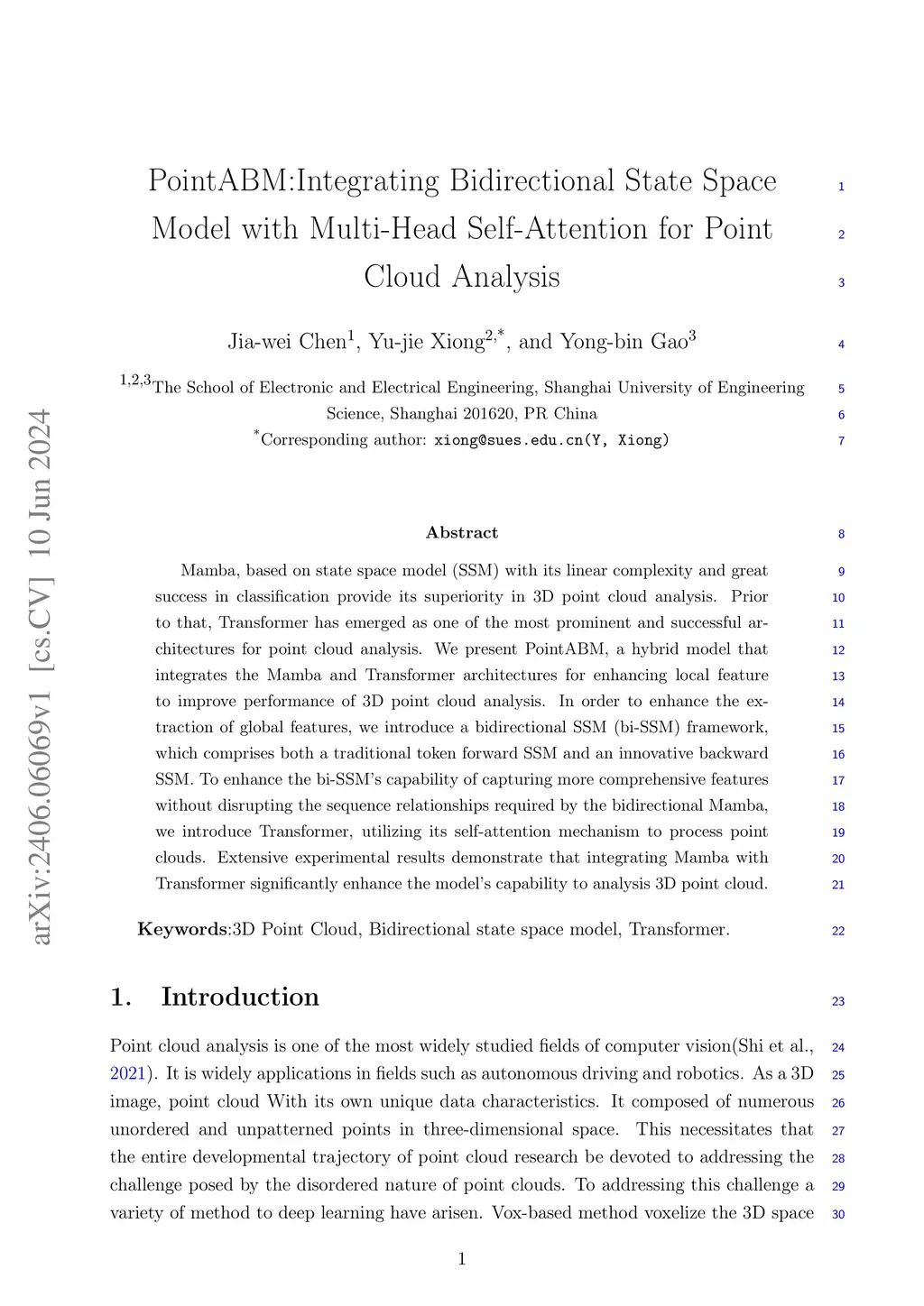 PointABM:Integrating Bidirectional State Space Model with Multi-Head