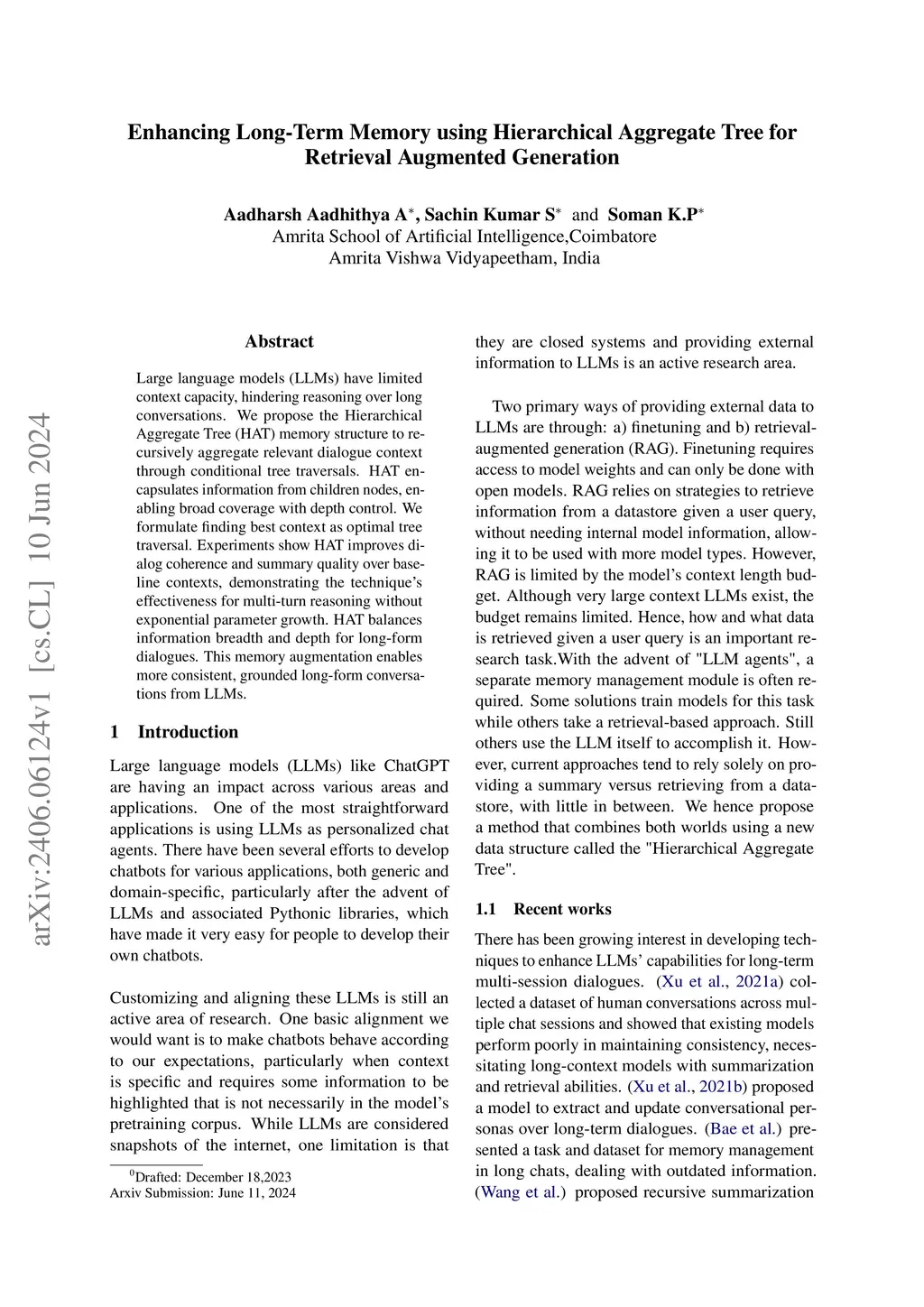 Enhancing Long-Term Memory using Hierarchical Aggregate Tree for