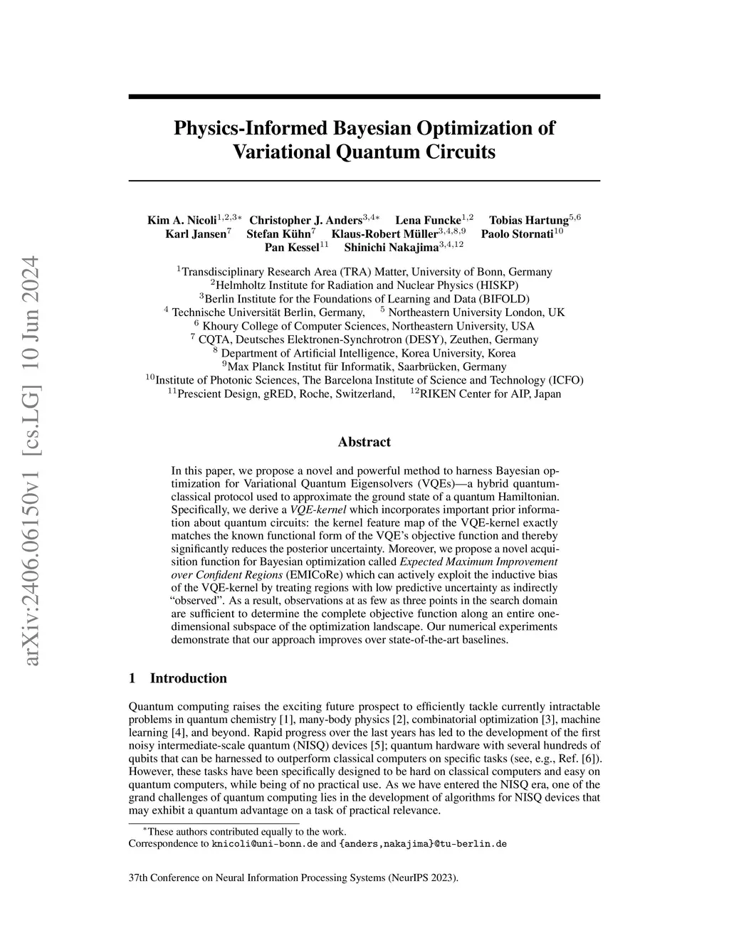 Physics-Informed Bayesian Optimization of Variational Quantum Circuits