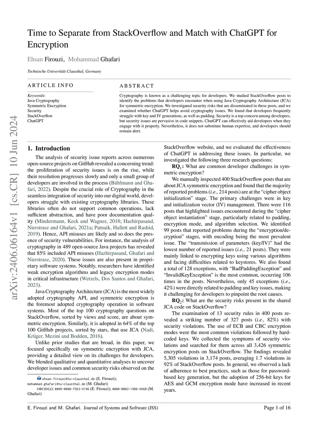Cryptography is known as a challenging topic for developers. We studied StackOverflow posts to identify the problems that developers encounter when using Java Cryptography Architecture (JCA) for symmetric encryption. We investigated security risks that are disseminated in these posts, and we examined whether ChatGPT helps avoid cryptography issues. We found that developers frequently struggle with key and IV generations, as well as padding. Security is a top concern among developers, but security issues are pervasive in code snippets. ChatGPT can effectively aid developers when they engage with it properly. Nevertheless, it does not substitute human expertise, and developers should remain alert.