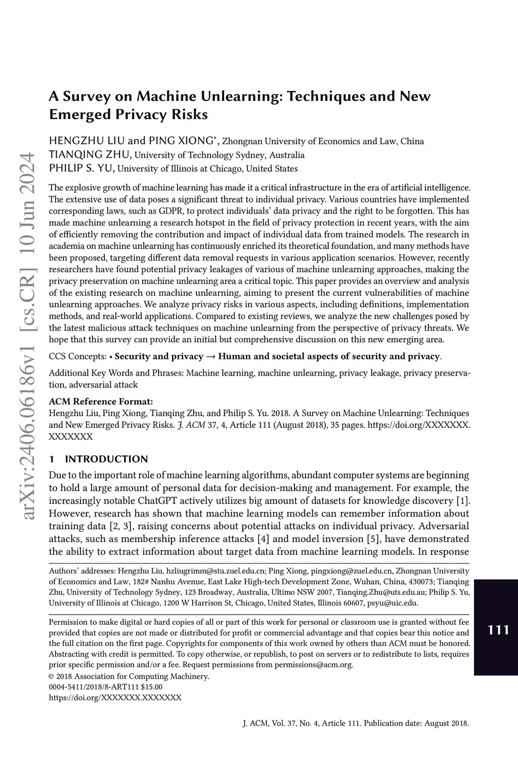 A Survey on Machine Unlearning: Techniques and New Emerged Privacy Risks