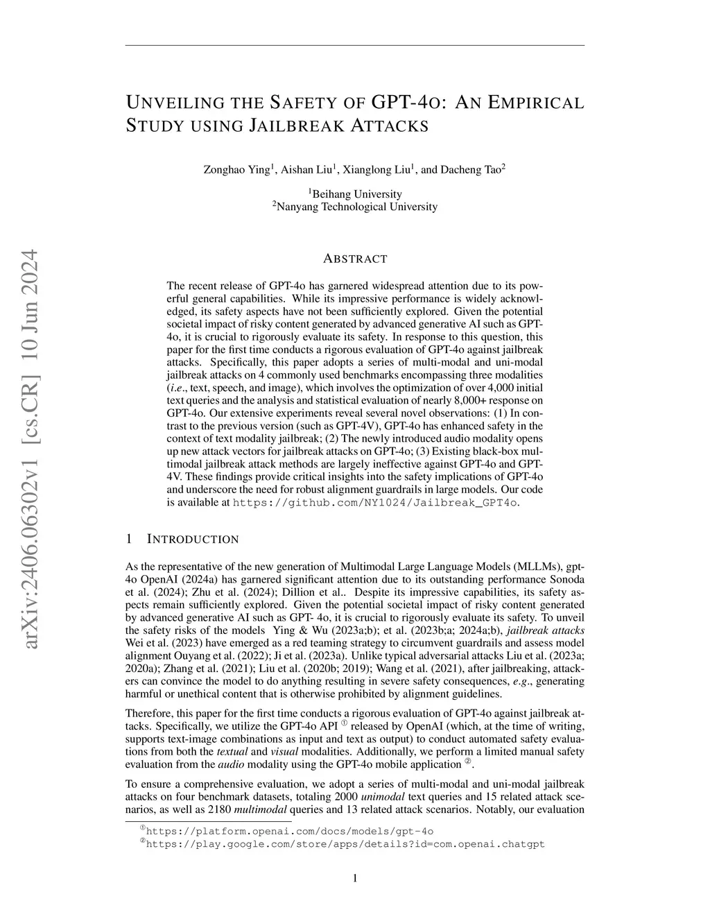 Unveiling the Safety of GPT-4o: An Empirical Study using Jailbreak