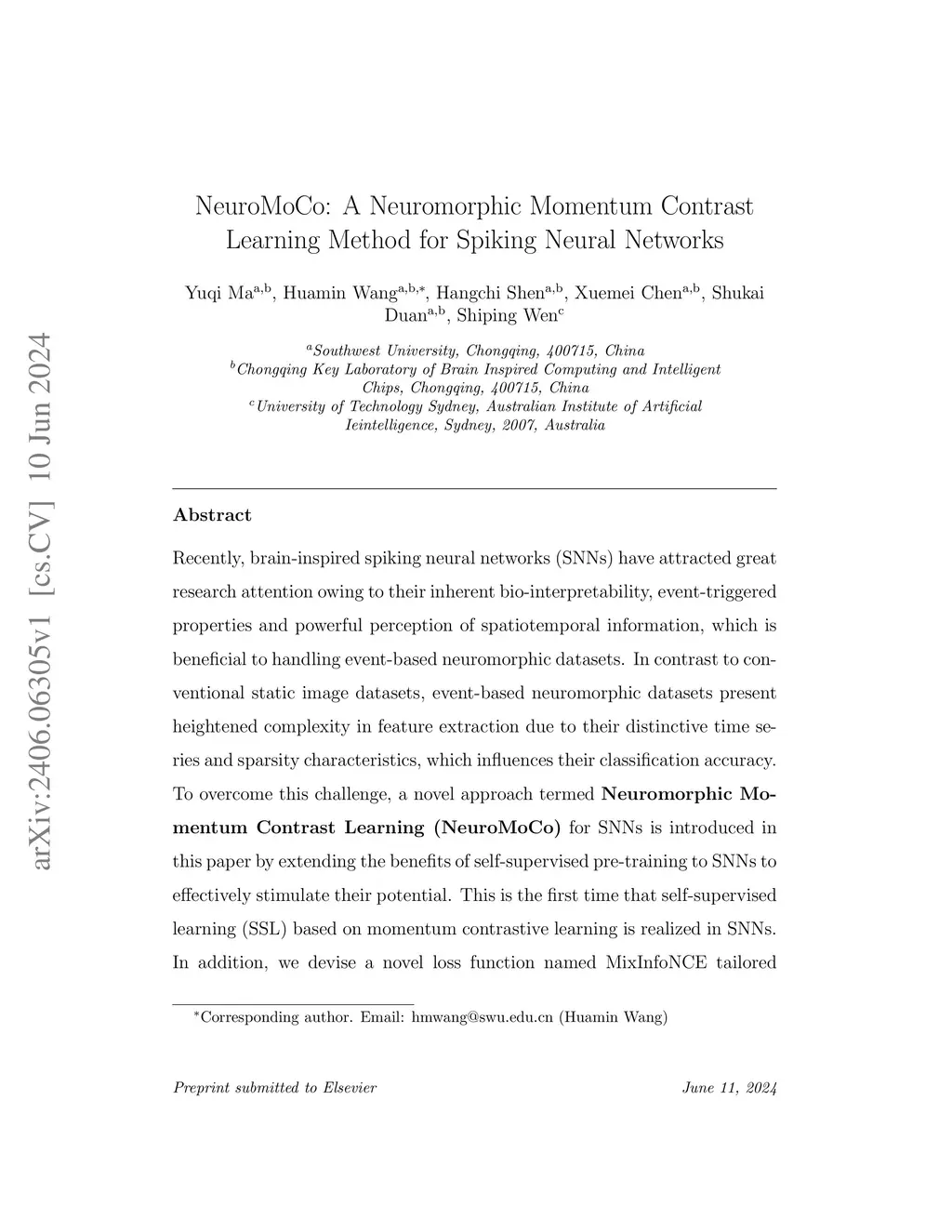 NeuroMoCo: A Neuromorphic Momentum Contrast Learning Method for Spiking