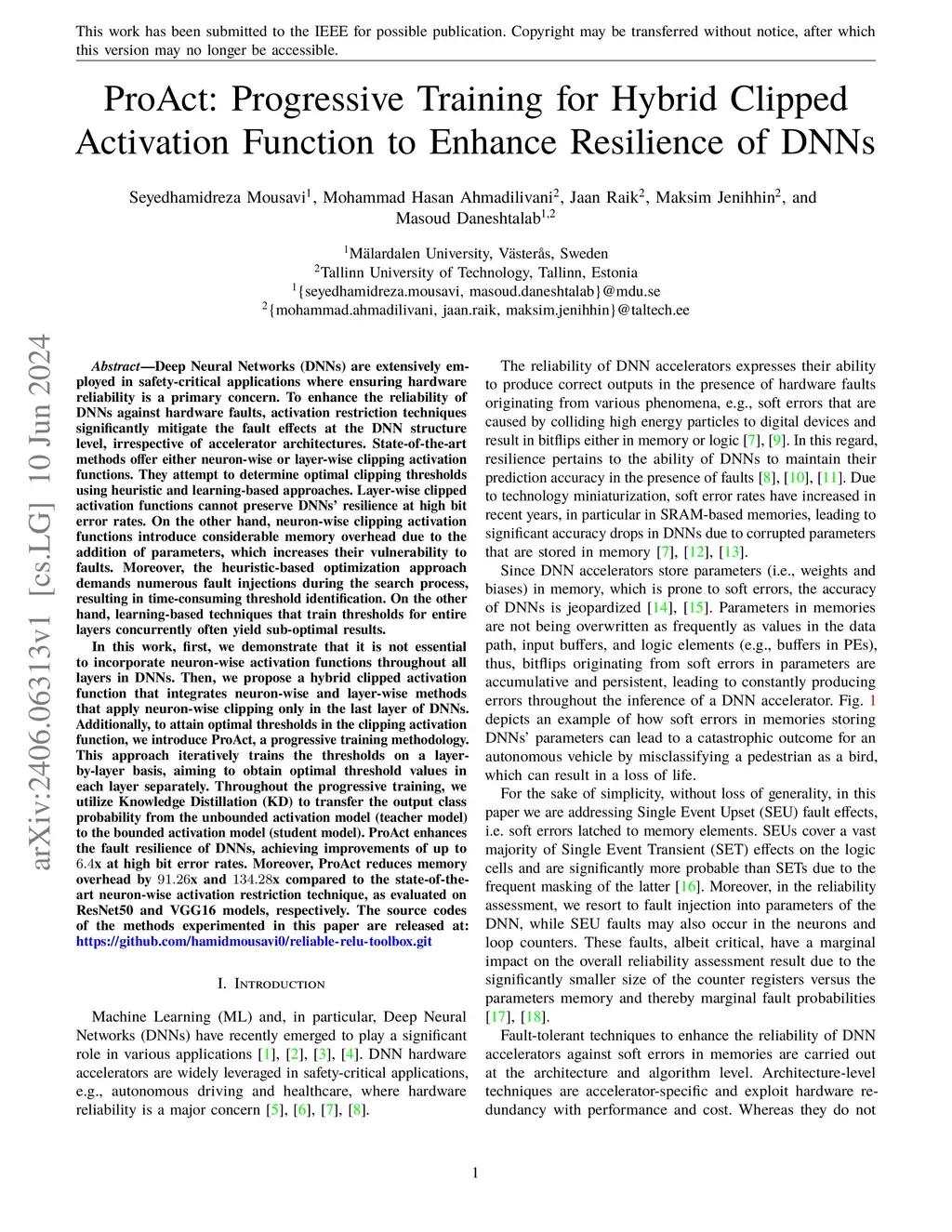 Deep Neural Networks (DNNs) are extensively employed in safety-critical applications where ensuring hardware reliability is a primary concern. To enhance the reliability of DNNs against hardware faults, activation restriction techniques significantly mitigate the fault effects at the DNN structure level, irrespective of accelerator architectures. State-of-the-art methods offer either neuron-wise or layer-wise clipping activation functions. They attempt to determine optimal clipping thresholds using heuristic and learning-based approaches. Layer-wise clipped activation functions cannot preserve DNNs resilience at high bit error rates. On the other hand, neuron-wise clipping activation functions introduce considerable memory overhead due to the addition of parameters, which increases their vulnerability to faults. Moreover, the heuristic-based optimization approach demands numerous fault injections during the search process, resulting in time-consuming threshold identification. On the other hand, learning-based techniques that train thresholds for entire layers concurrently often yield sub-optimal results. In this work, first, we demonstrate that it is not essential to incorporate neuron-wise activation functions throughout all layers in DNNs. Then, we propose a hybrid clipped activation function that integrates neuron-wise and layer-wise methods that apply neuron-wise clipping only in the last layer of DNNs. Additionally, to attain optimal thresholds in the clipping activation function, we introduce ProAct, a progressive training methodology. This approach iteratively trains the thresholds on a layer-by-layer basis, aiming to obtain optimal threshold values in each layer separately.