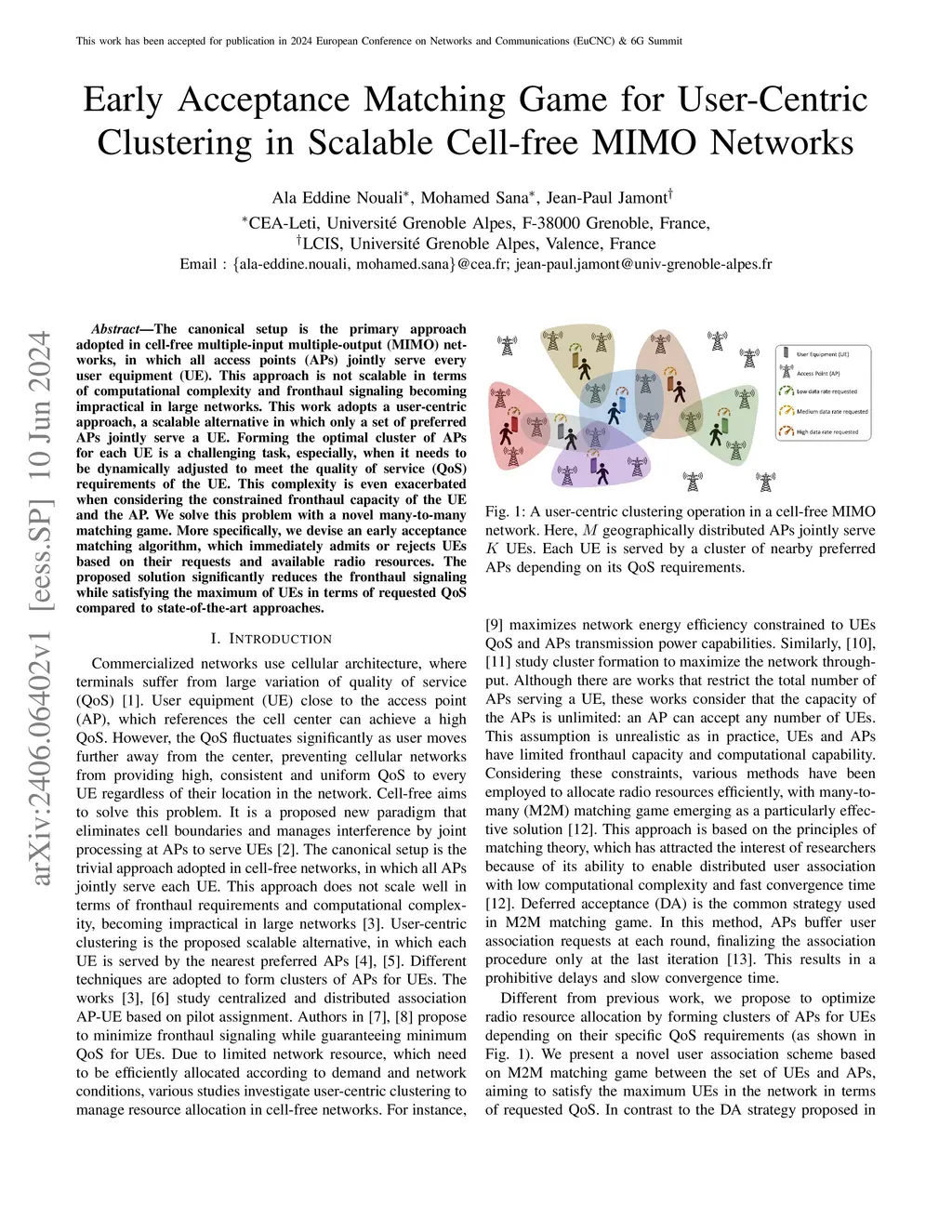 Early Acceptance Matching Game for User-Centric Clustering in Scalable
