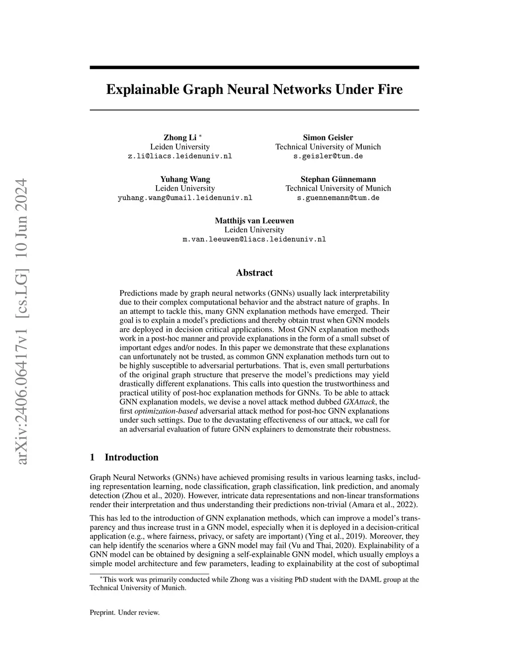 Predictions made by graph neural networks (GNNs) usually lack interpretability due to their complex computational behavior and the abstract nature of graphs. In an attempt to tackle this, many GNN explanation methods have emerged. Their goal is to explain a model's predictions and thereby obtain trust when GNN models are deployed in decision critical applications. Most GNN explanation methods work in a post-hoc manner and provide explanations in the form of a small subset of important edges and/or nodes. In this paper we demonstrate that these explanations can unfortunately not be trusted, as common GNN explanation methods turn out to be highly susceptible to adversarial perturbations. That is, even small perturbations of the original graph structure that preserve the model's predictions may yield drastically different explanations. This calls into question the trustworthiness and practical utility of post-hoc explanation methods for GNNs. To be able to attack GNN explanation models, we devise a novel attack method dubbed \textit{GXAttack}, the first \textit{optimization-based} adversarial attack method for post-hoc GNN explanations under such settings. Due to the devastating effectiveness of our attack, we call for an adversarial evaluation of future GNN explainers to demonstrate their robustness.