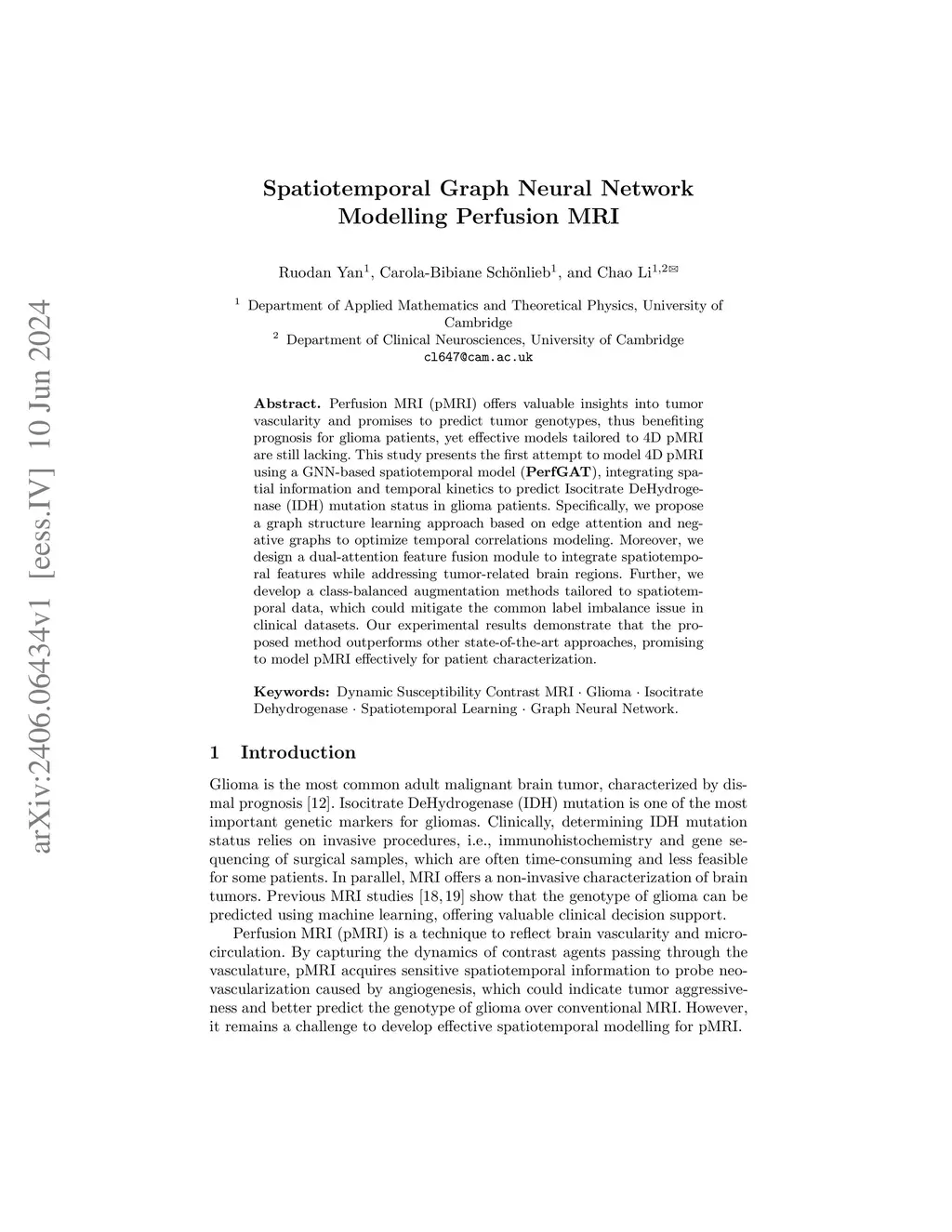 Spatiotemporal Graph Neural Network Modelling Perfusion MRI