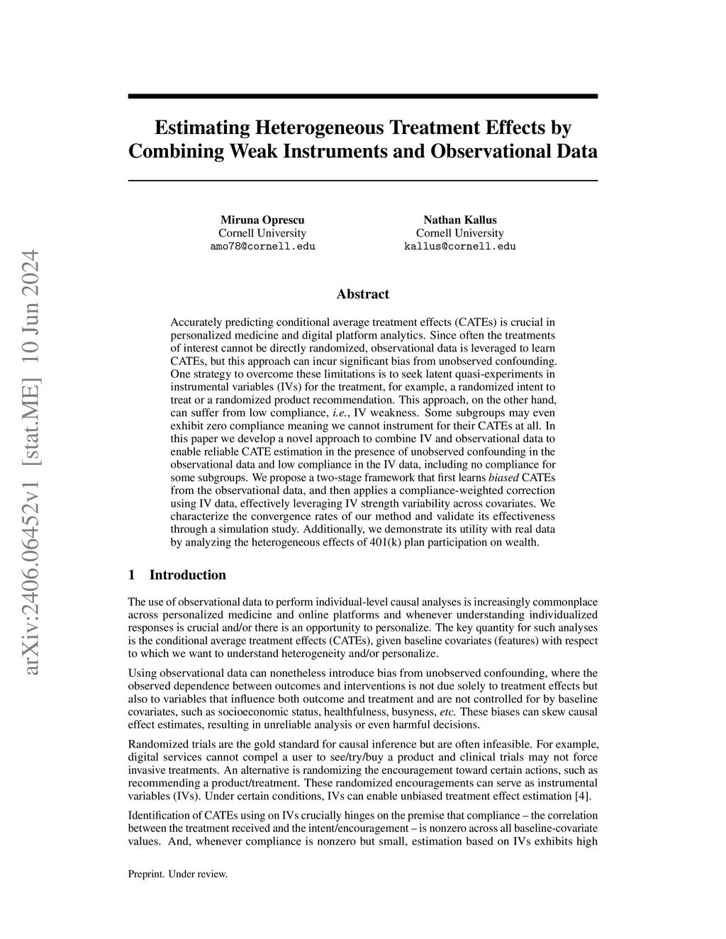 Accurately predicting conditional average treatment effects (CATEs) is crucial in personalized medicine and digital platform analytics. Since often the treatments of interest cannot be directly randomized, observational data is leveraged to learn CATEs, but this approach can incur significant bias from unobserved confounding. One strategy to overcome these limitations is to seek latent quasi-experiments in instrumental variables (IVs) for the treatment, for example, a randomized intent to treat or a randomized product recommendation. This approach, on the other hand, can suffer from low compliance, i.e., IV weakness. Some subgroups may even exhibit zero compliance meaning we cannot instrument for their CATEs at all. In this paper we develop a novel approach to combine IV and observational data to enable reliable CATE estimation in the presence of unobserved confounding in the observational data and low compliance in the IV data, including no compliance for some subgroups. We propose a two-stage framework that first learns biased CATEs from the observational data, and then applies a compliance-weighted correction using IV data, effectively leveraging IV strength variability across covariates. We characterize the convergence rates of our method and validate its effectiveness through a simulation study. Additionally, we demonstrate its utility with real data by analyzing the heterogeneous effects of 401(k) plan participation on wealth.