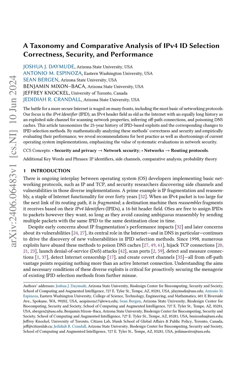 The battle for a more secure Internet is waged on many fronts, including the most basic of networking protocols. Our focus is the IPv4 Identifier (IPID), an IPv4 header field as old as the Internet with an equally long history as an exploited side channel for scanning network properties, inferring off-path connections, and poisoning DNS caches. This article taxonomizes the 25-year history of IPID-based exploits and the corresponding changes to IPID selection methods. By mathematically analyzing these methods' correctness and security and empirically evaluating their performance, we reveal recommendations for best practice as well as shortcomings of current operating system implementations, emphasizing the value of systematic evaluations in network security.