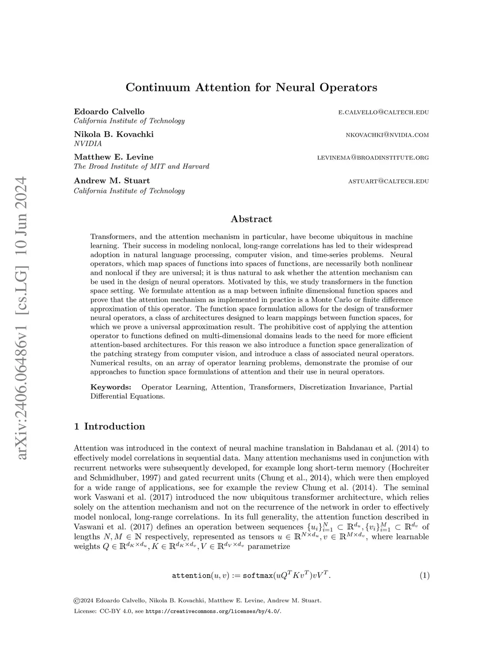Continuum Attention for Neural Operators