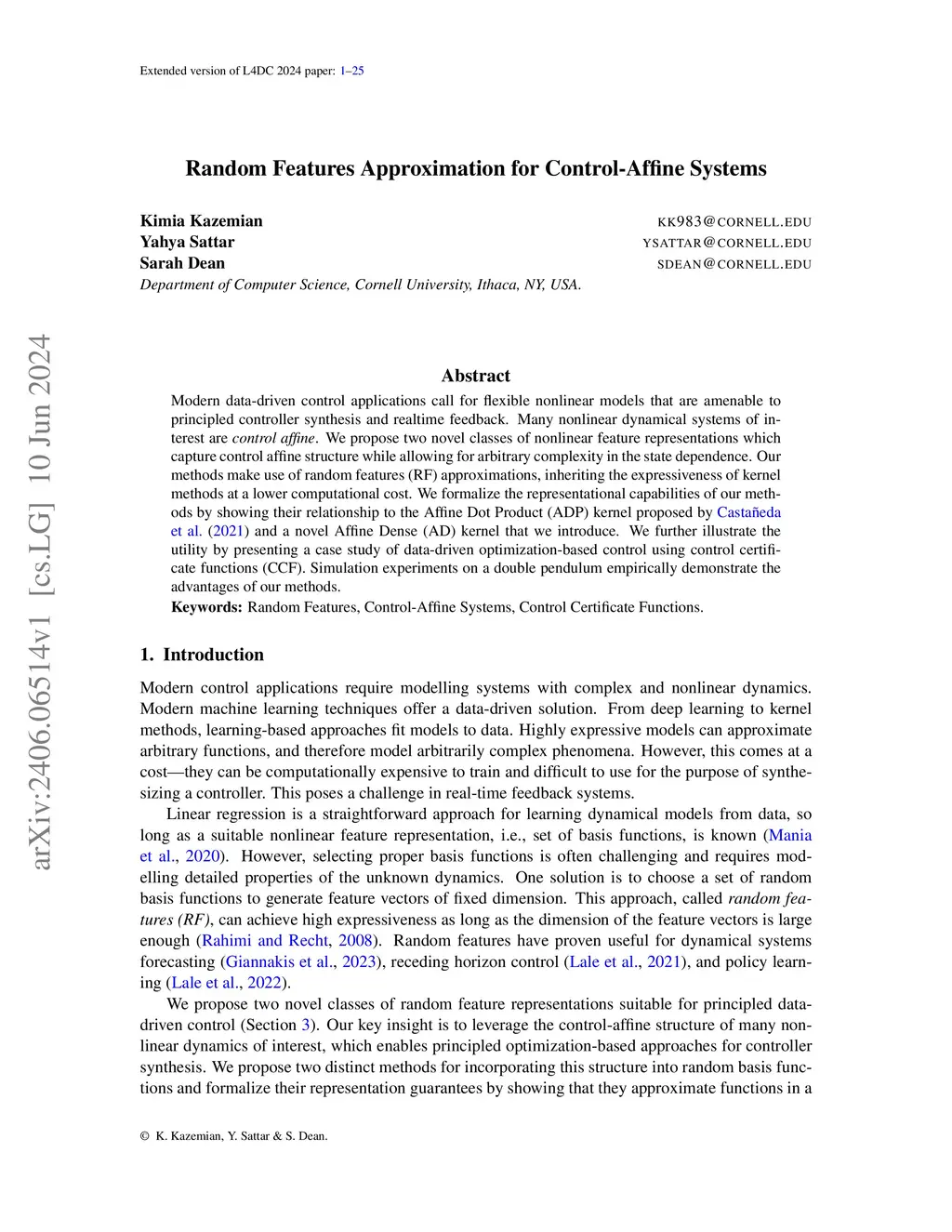 Random Features Approximation for Control-Affine Systems