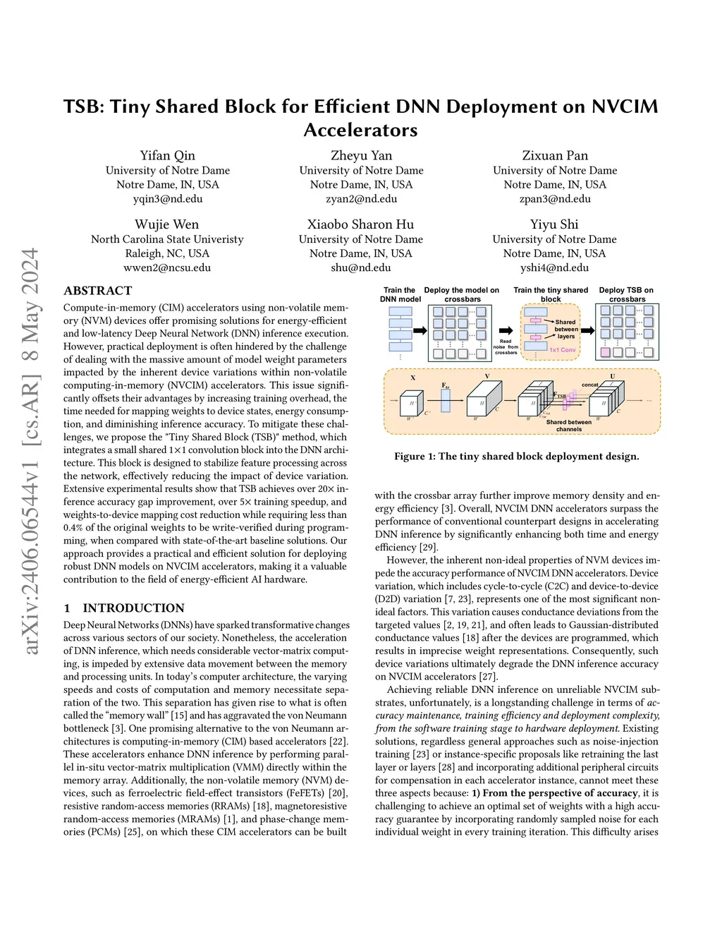 TSB: Tiny Shared Block for Efficient DNN Deployment on NVCIM