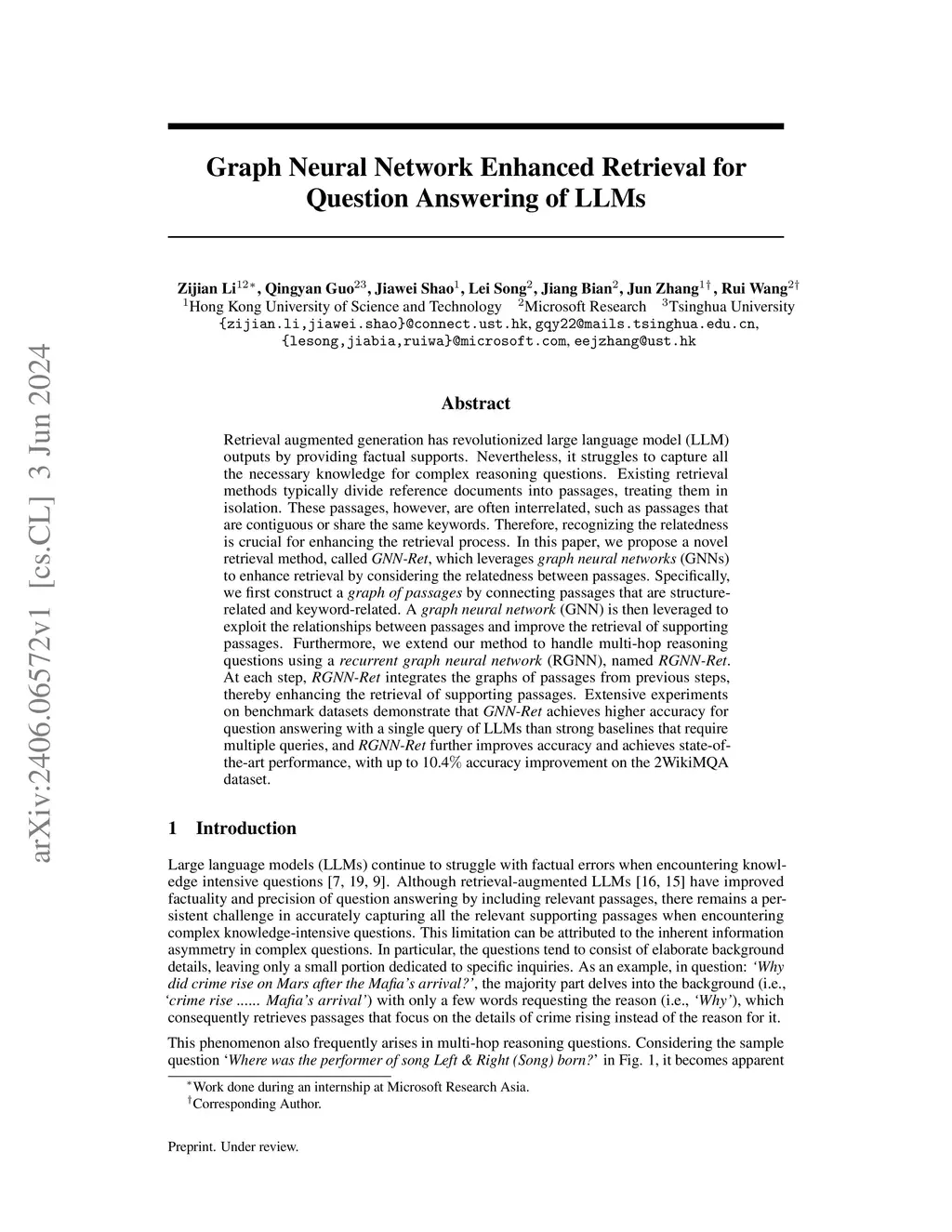 Graph Neural Network Enhanced Retrieval for Question Answering of LLMs