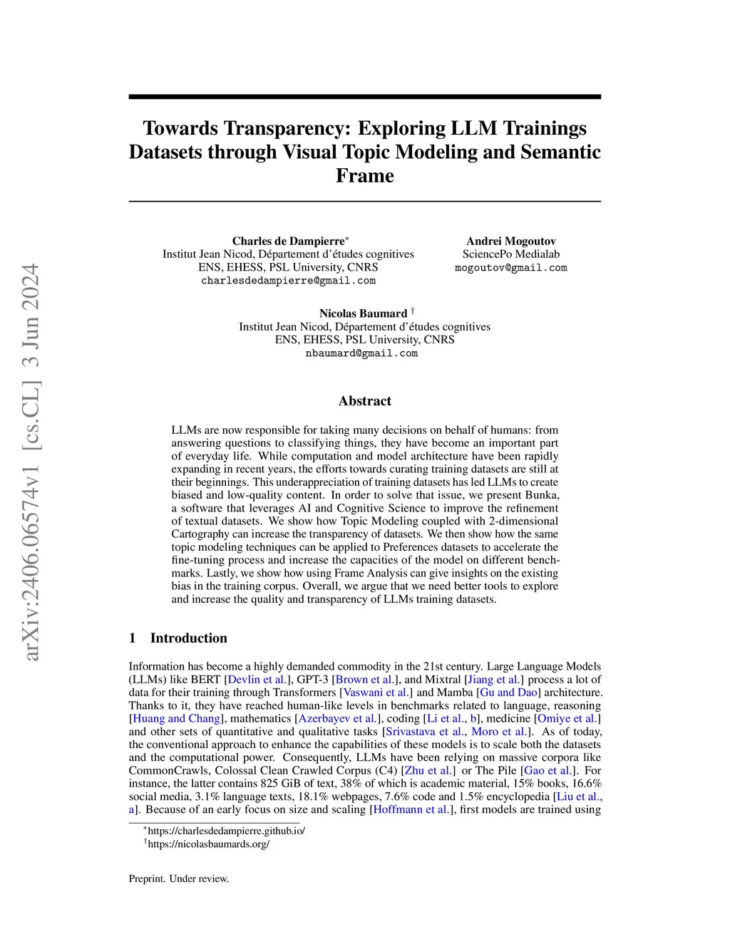 LLMs are now responsible for making many decisions on behalf of humans: from answering questions to classifying things, they have become an important part of everyday life. While computation and model architecture have been rapidly expanding in recent years, the efforts towards curating training datasets are still in their beginnings. This underappreciation of training datasets has led LLMs to create biased and low-quality content. In order to solve that issue, we present Bunka, a software that leverages AI and Cognitive Science to improve the refinement of textual datasets. We show how Topic Modeling coupled with 2-dimensional Cartography can increase the transparency of datasets. We then show how the same Topic Modeling techniques can be applied to Preferences datasets to accelerate the fine-tuning process and increase the capacities of the model on different benchmarks. Lastly, we show how using Frame Analysis can give insights into existing biases in the training corpus. Overall, we argue that we need better tools to explore and increase the quality and transparency of LLMs training datasets.