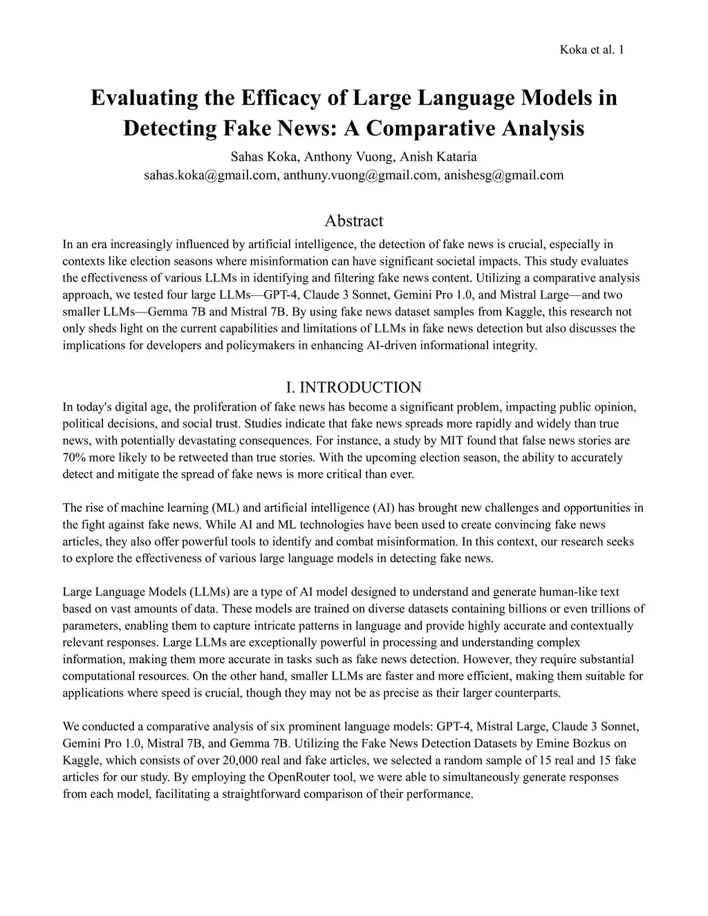 In an era increasingly influenced by artificial intelligence, the detection of fake news is crucial, especially in contexts like election seasons where misinformation can have significant societal impacts. This study evaluates the effectiveness of various LLMs in identifying and filtering fake news content. Utilizing a comparative analysis approach, we tested four large LLMs -- GPT-4, Claude 3 Sonnet, Gemini Pro 1.0, and Mistral Large -- and two smaller LLMs -- Gemma 7B and Mistral 7B. By using fake news dataset samples from Kaggle, this research not only sheds light on the current capabilities and limitations of LLMs in fake news detection but also discusses the implications for developers and policymakers in enhancing AI-driven informational integrity.