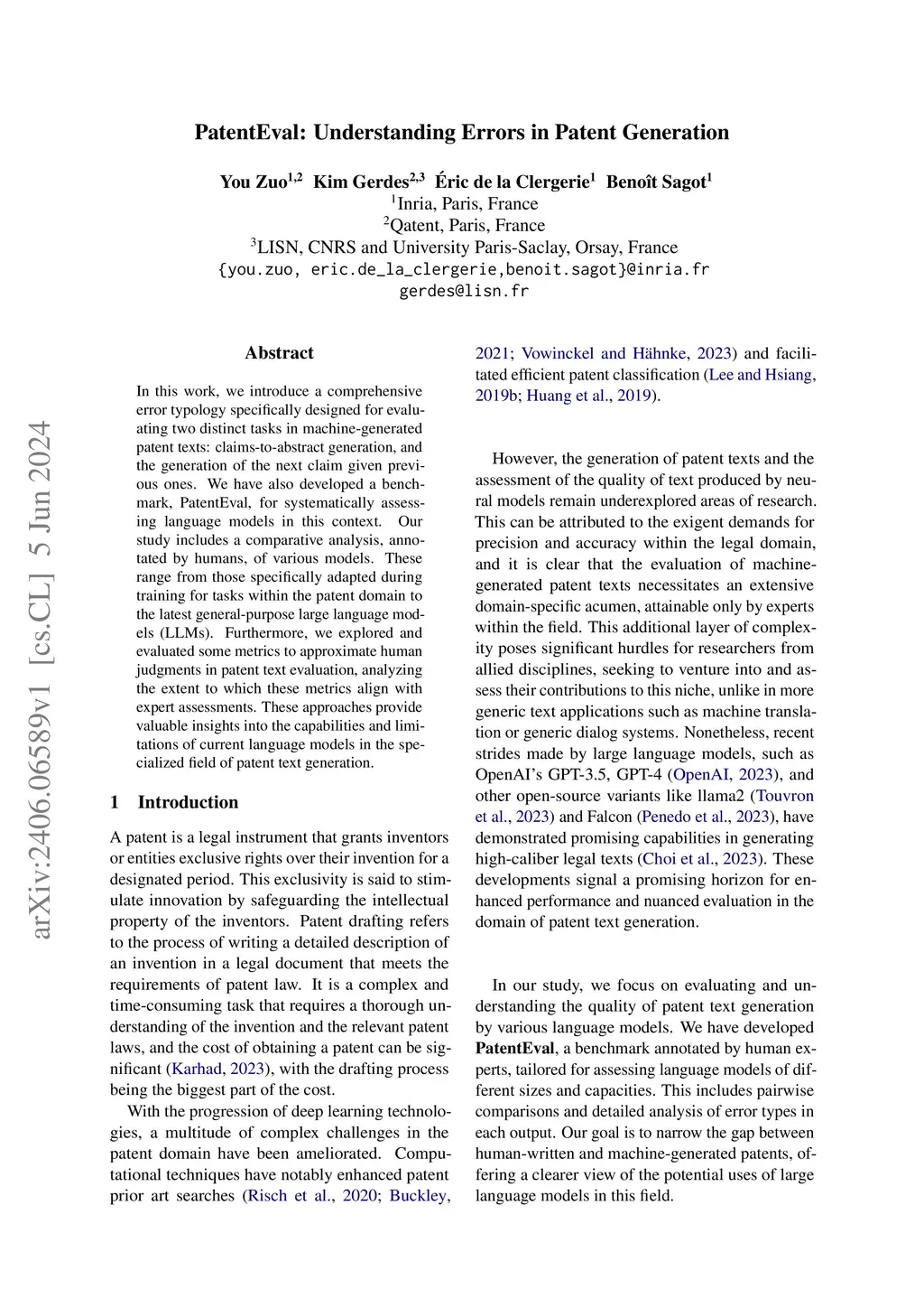 PatentEval: Understanding Errors in Patent Generation