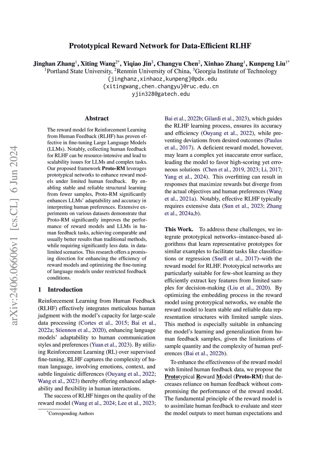 The reward model for Reinforcement Learning from Human Feedback (RLHF) has proven effective in fine-tuning Large Language Models (LLMs). Notably, collecting human feedback for RLHF can be resource-intensive and lead to scalability issues for LLMs and complex tasks. Our proposed framework Proto-RM leverages prototypical networks to enhance reward models under limited human feedback. By enabling stable and reliable structural learning from fewer samples, Proto-RM significantly enhances LLMs' adaptability and accuracy in interpreting human preferences. Extensive experiments on various datasets demonstrate that Proto-RM significantly improves the performance of reward models and LLMs in human feedback tasks, achieving comparable and usually better results than traditional methods, while requiring significantly less data. in data-limited scenarios. This research offers a promising direction for enhancing the efficiency of reward models and optimizing the fine-tuning of language models under restricted feedback conditions.