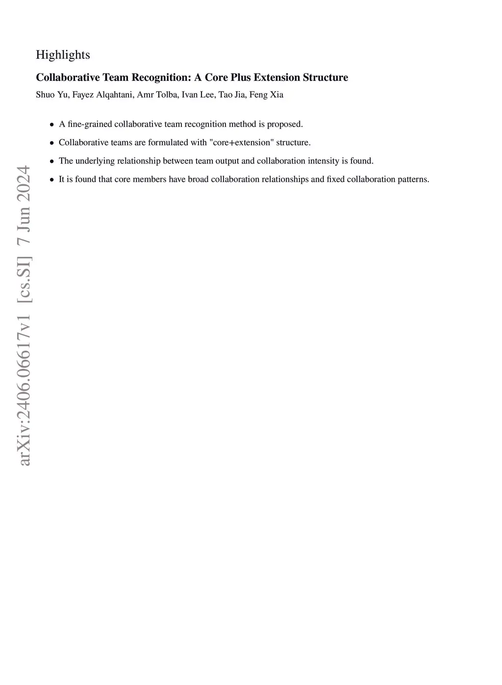 Collaborative Team Recognition: A Core Plus Extension Structure