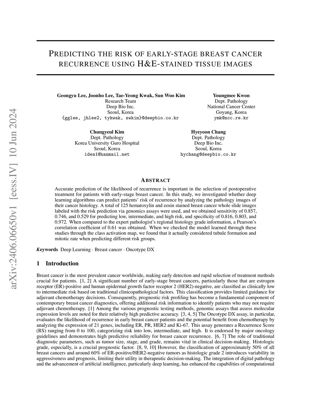 Assessing the risk of recurrence in early-stage breast cancer through H&E stained whole slide images