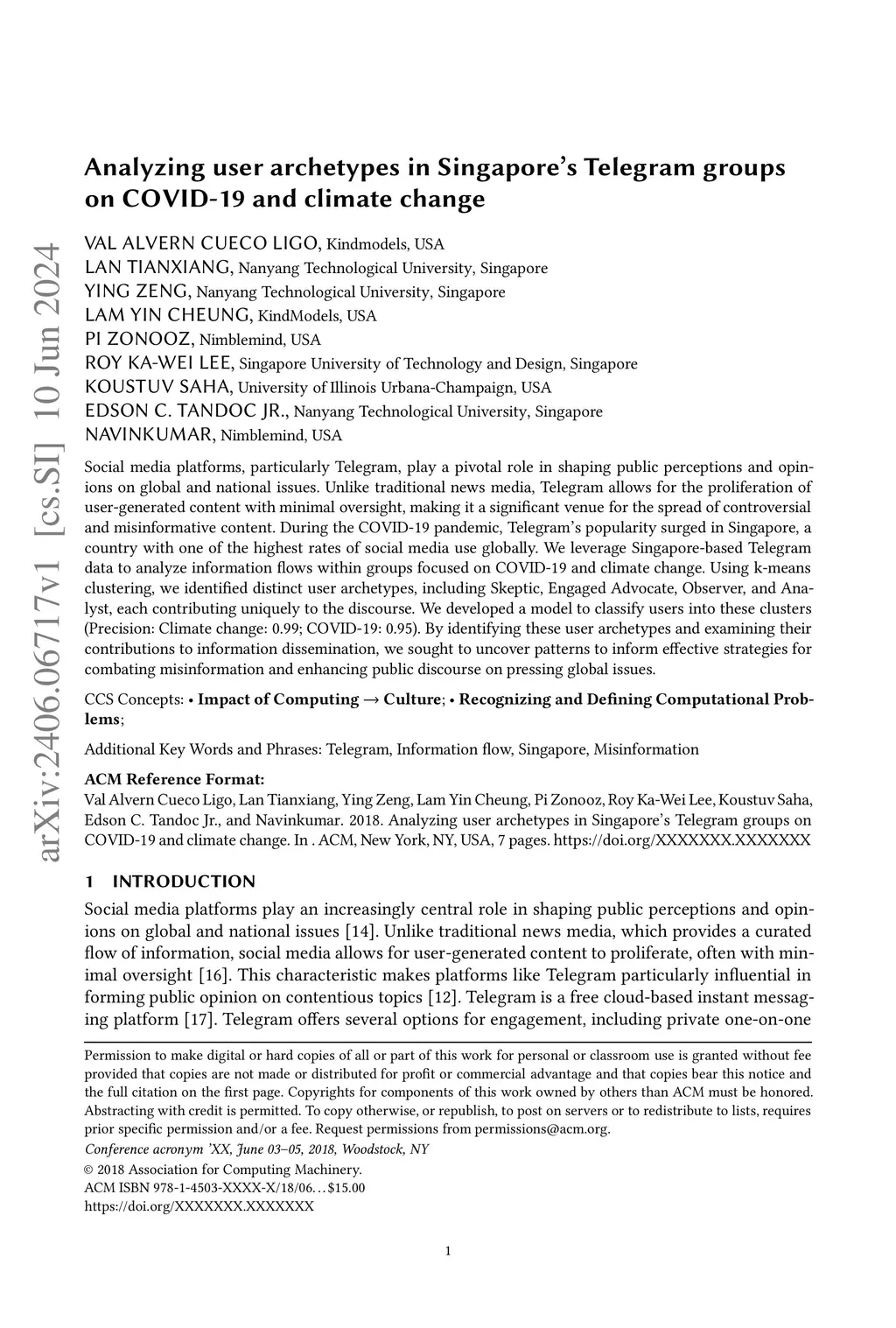 Analyzing user archetypes in Singapore's Telegram groups on COVID-19 and