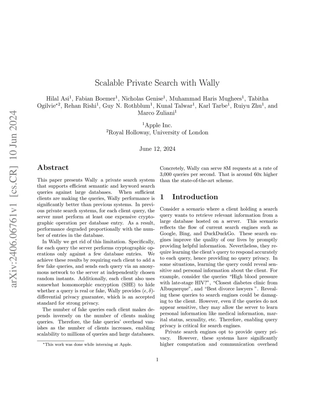 Scalable Private Search with Wally