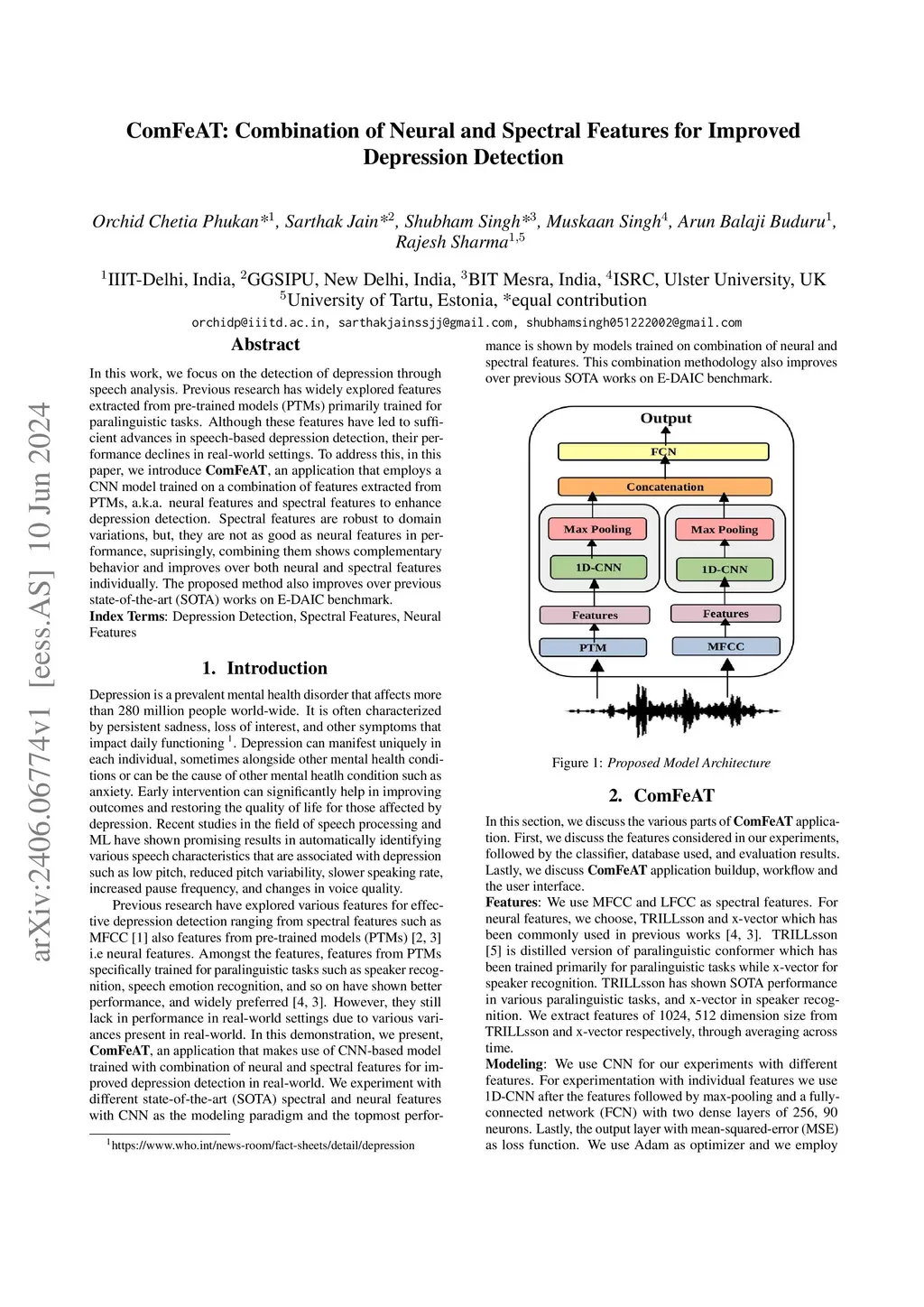 In this work, we focus on the detection of depression through speech analysis. Previous research has widely explored features extracted from pre-trained models (PTMs) primarily trained for paralinguistic tasks. Although these features have led to sufficient advances in speech-based depression detection, their performance declines in real-world settings. To address this, in this paper, we introduce ComFeAT, an application that employs a CNN model trained on a combination of features extracted from PTMs, a.k.a. neural features and spectral features to enhance depression detection. Spectral features are robust to domain variations, but, they are not as good as neural features in performance, suprisingly, combining them shows complementary behavior and improves over both neural and spectral features individually. The proposed method also improves over previous state-of-the-art (SOTA) works on E-DAIC benchmark.
