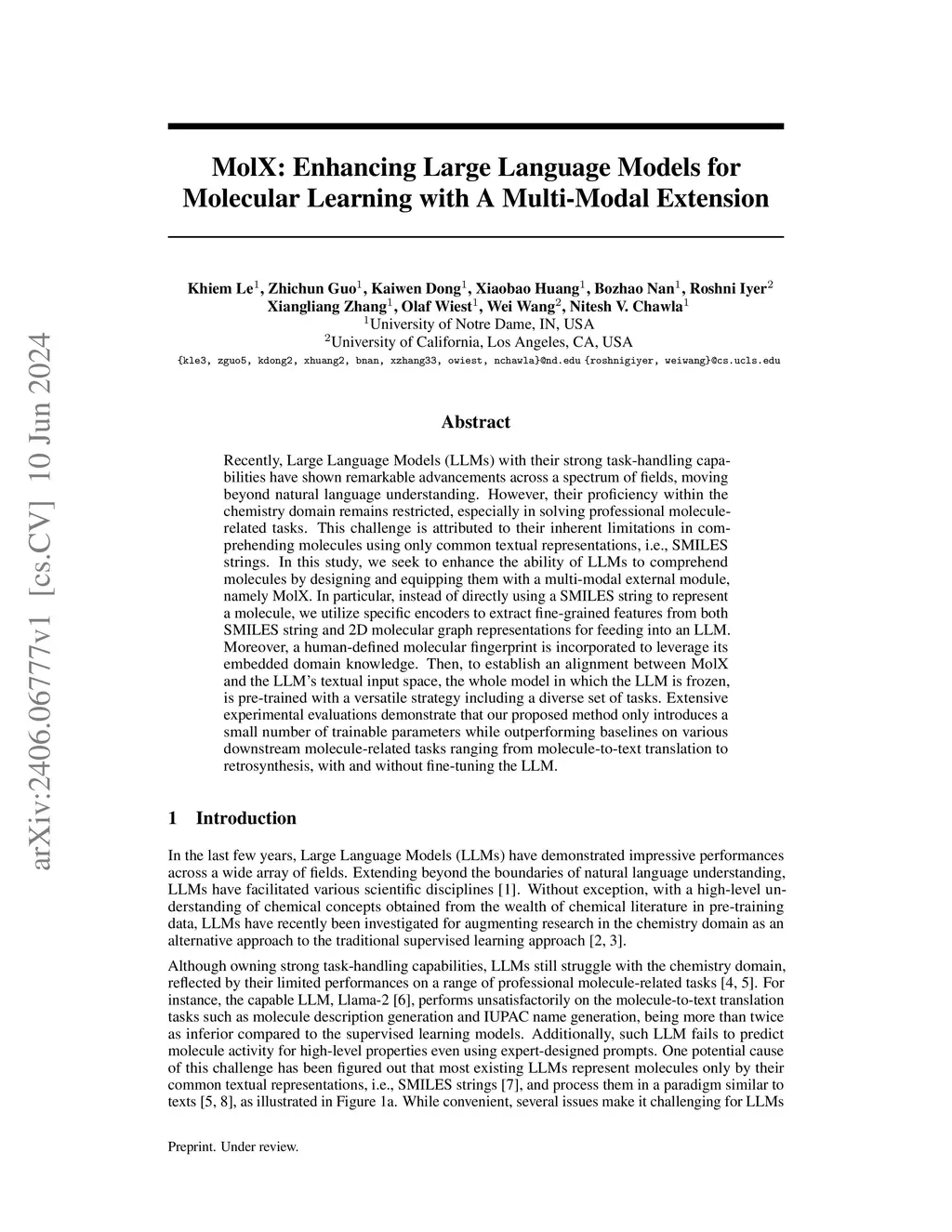 MolX: Enhancing Large Language Models for Molecular Learning with A Multi-Modal Extension