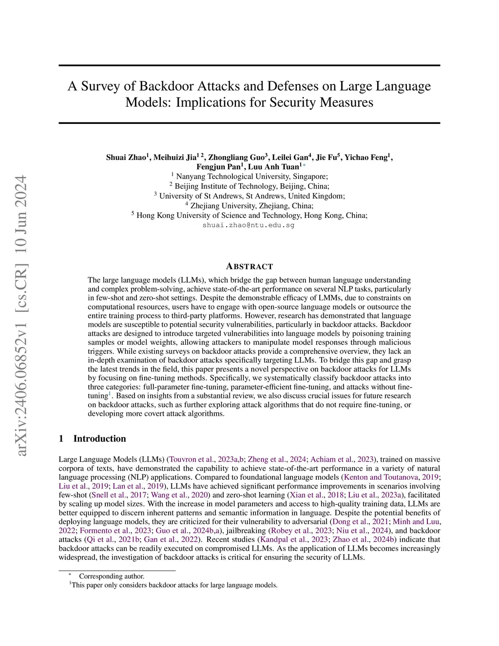 A Survey of Recent Backdoor Attacks and Defenses in Large Language Models