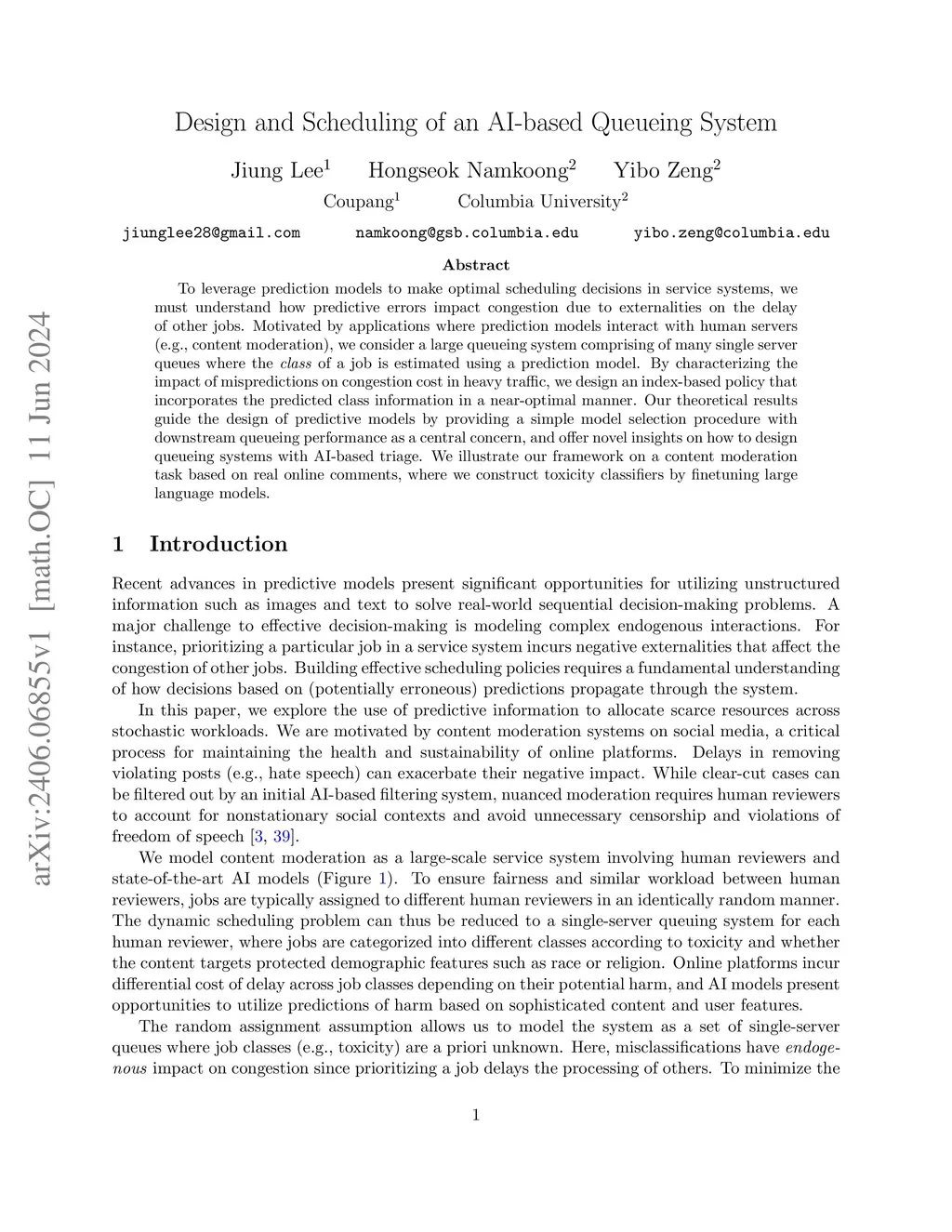 To leverage prediction models to make optimal scheduling decisions in service systems, we must understand how predictive errors impact congestion due to externalities on the delay of other jobs. Motivated by applications where prediction models interact with human servers (e.g., content moderation), we consider a large queueing system comprising of many single server queues where the class of a job is estimated using a prediction model. By characterizing the impact of mispredictions on congestion cost in heavy traffic, we design an index-based policy that incorporates the predicted class information in a near-optimal manner. Our theoretical results guide the design of predictive models by providing a simple model selection procedure with downstream queueing performance as a central concern, and offer novel insights on how to design queueing systems with AI-based triage. We illustrate our framework on a content moderation task based on real online comments, where we construct toxicity classifiers by finetuning large language models.