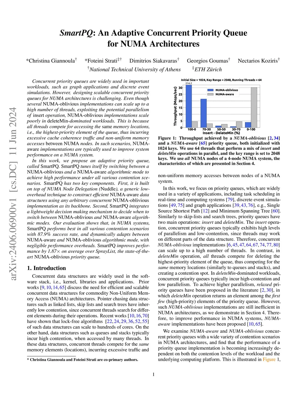 SmartPQ: An Adaptive Concurrent Priority Queue for NUMA Architectures