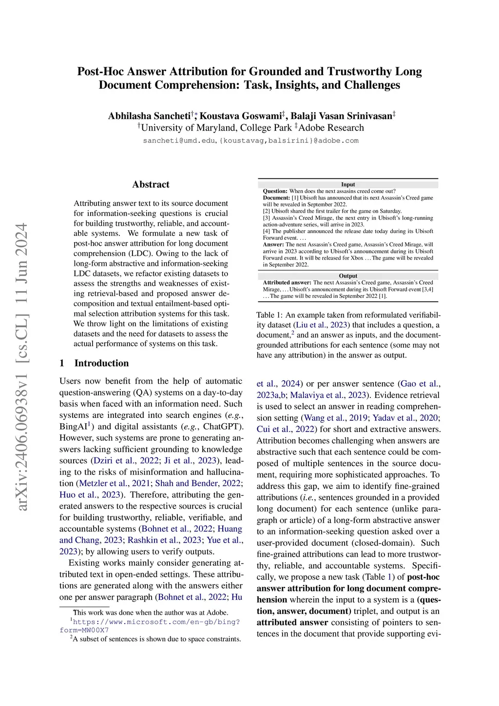 Post-Hoc Answer Attribution for Grounded and Trustworthy Long Document