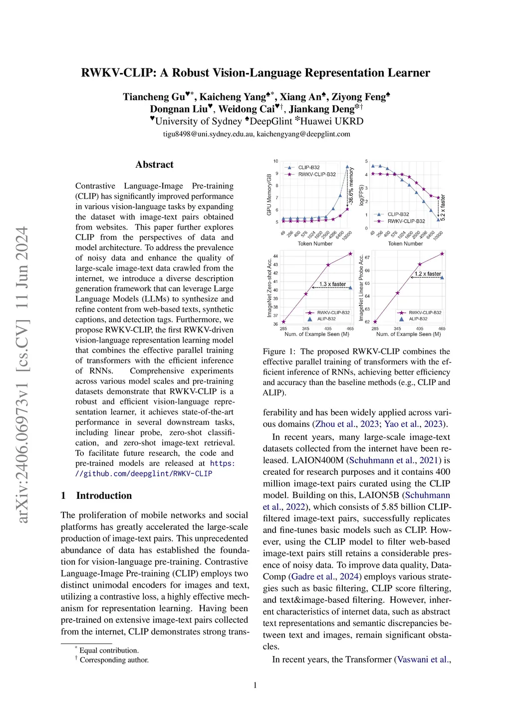 RWKV-CLIP: A Robust Vision-Language Representation Learner