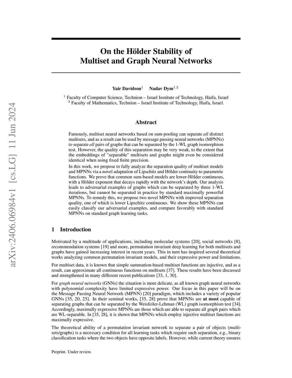 Extensive research efforts have been put into characterizing and constructing maximally separating multiset and graph neural networks. However, recent empirical evidence suggests the notion of separation itself doesn't capture several interesting phenomena. On the one hand, the quality of this separation may be very weak, to the extent that the embeddings of "separable" objects might even be considered identical when using fixed finite precision. On the other hand, architectures which aren't capable of separation in theory, somehow achieve separation when taking the network to be wide enough.In this work, we address both of these issues, by proposing a novel pair-wise separation quality analysis framework which is based on an adaptation of Lipschitz and \Holder{} stability to parametric functions. The proposed framework, which we name \emph{\Holder{} in expectation}, allows for separation quality analysis, without restricting the analysis to embeddings that can separate all the input space simultaneously. We prove that common sum-based models are lower-\Holder{} in expectation, with an exponentthat decays rapidly with the network's depth . Our analysis leads to adversarial examples of graphs which can be separated by three 1-WL iterations, but cannot be separated in practice by standard maximally powerful Message Passing Neural Networks (MPNNs). To remedy this, we propose two novel MPNNs with improved separation quality, one of which is lower Lipschitz in expectation. We show these MPNNs can easily classify our adversarial examples, and compare favorably with standard MPNNs on standard graph learning tasks.