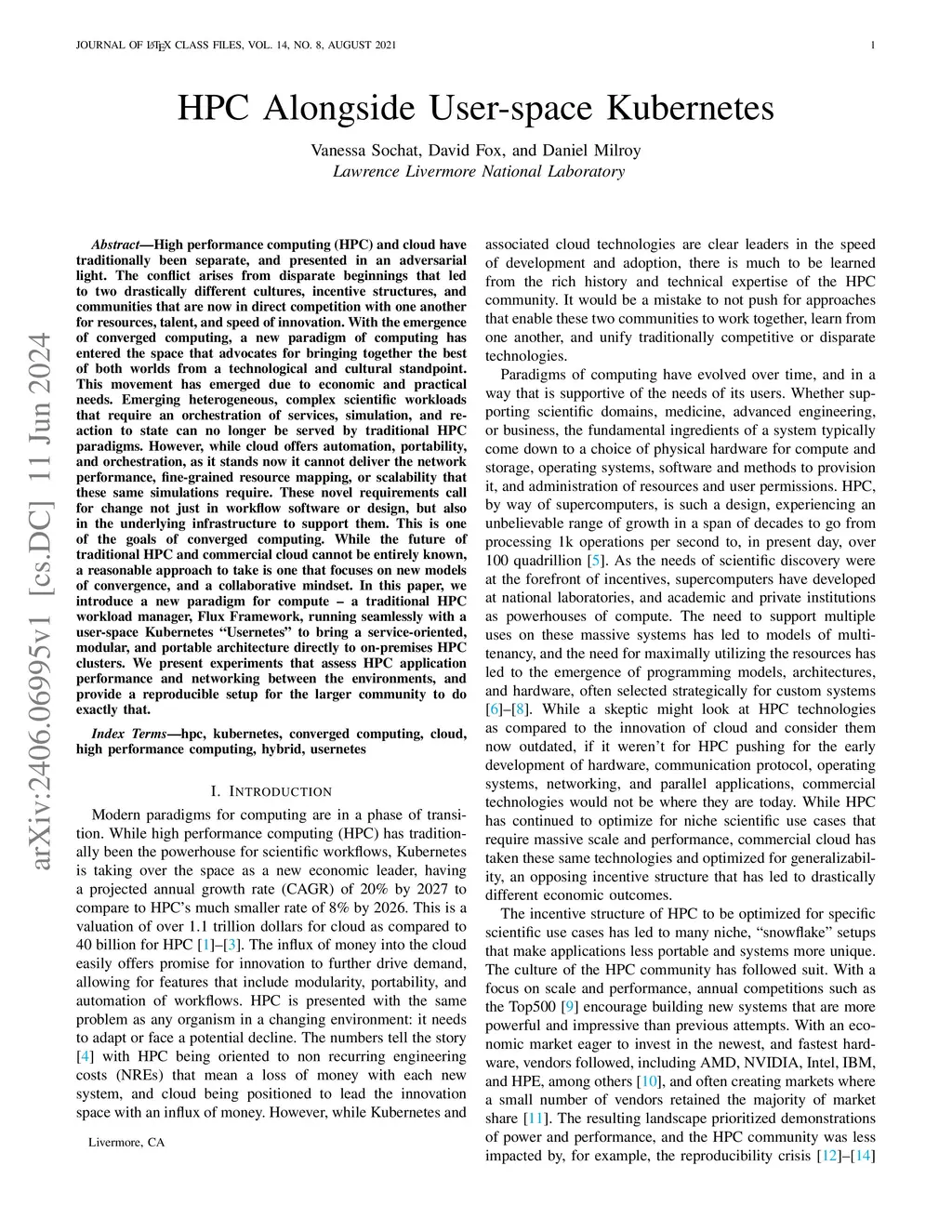 High performance computing (HPC) and cloud have traditionally been separate, and presented in an adversarial light. The conflict arises from disparate beginnings that led to two drastically different cultures, incentive structures, and communities that are now in direct competition with one another for resources, talent, and speed of innovation. With the emergence of converged computing, a new paradigm of computing has entered the space that advocates for bringing together the best of both worlds from a technological and cultural standpoint. This movement has emerged due to economic and practical needs. Emerging heterogeneous, complex scientific workloads that require an orchestration of services, simulation, and reaction to state can no longer be served by traditional HPC paradigms. However, while cloud offers automation, portability, and orchestration, as it stands now it cannot deliver the network performance, fine-grained resource mapping, or scalability that these same simulations require. These novel requirements call for change not just in workflow software or design, but also in the underlying infrastructure to support them. This is one of the goals of converged computing. While the future of traditional HPC and commercial cloud cannot be entirely known, a reasonable approach to take is one that focuses on new models of convergence, and a collaborative mindset. In this paper, we introduce a new paradigm for compute -- a traditional HPC workload manager, Flux Framework, running seamlessly with a user-space Kubernetes "Usernetes" to bring a service-oriented, modular, and portable architecture directly to on-premises HPC clusters. We present experiments that assess HPC application performance and networking between the environments, and provide a reproducible setup for the larger community to do exactly that.