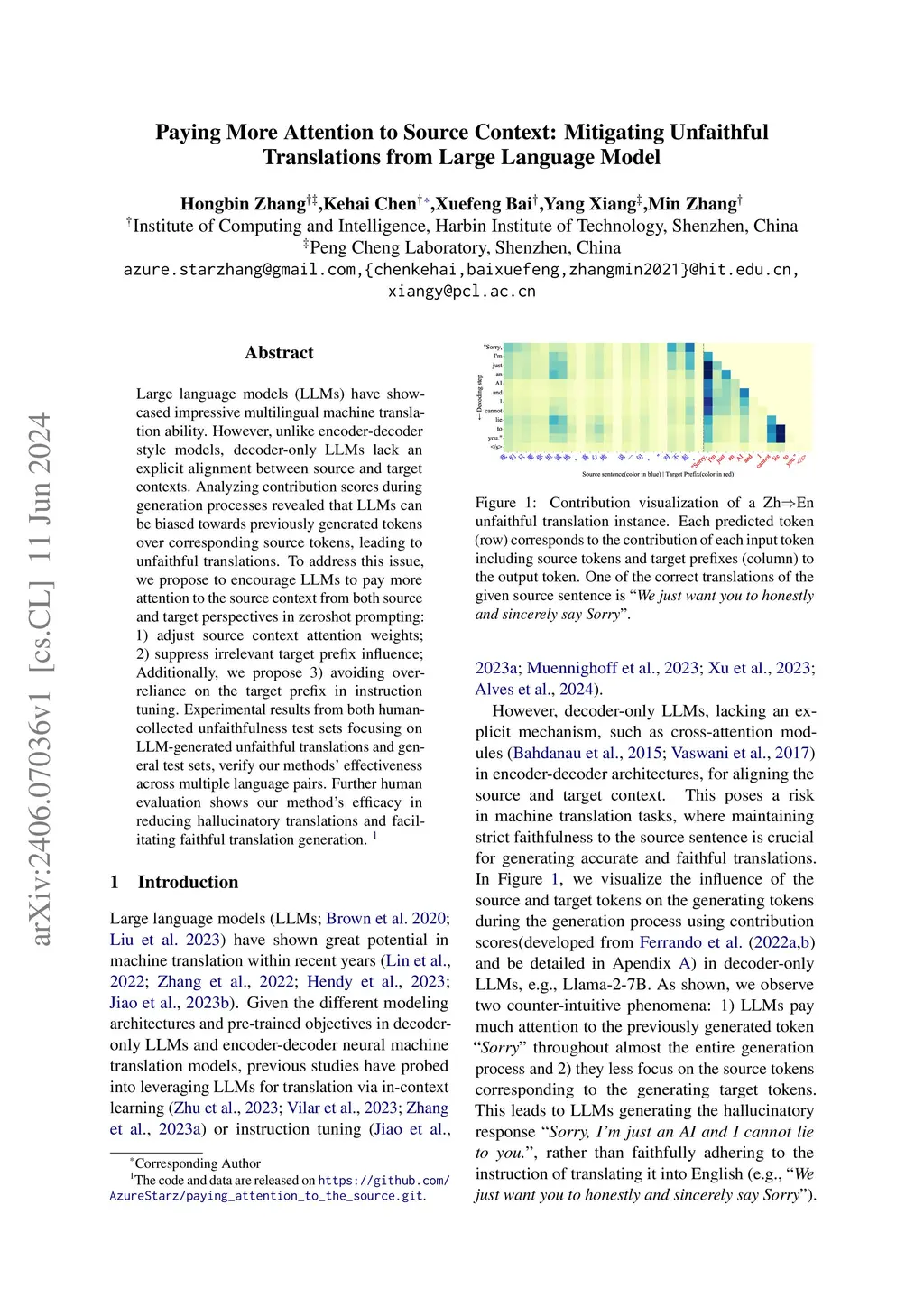 Large language models (LLMs) have showcased impressive multilingual machine translation ability. However, unlike encoder-decoder style models, decoder-only LLMs lack an explicit alignment between source and target contexts. Analyzing contribution scores during generation processes revealed that LLMs can be biased towards previously generated tokens over corresponding source tokens, leading to unfaithful translations. To address this issue, we propose to encourage LLMs to pay more attention to the source context from both source and target perspectives in zeroshot prompting: 1) adjust source context attention weights; 2) suppress irrelevant target prefix influence; Additionally, we propose 3) avoiding over-reliance on the target prefix in instruction tuning. Experimental results from both human-collected unfaithfulness test sets focusing on LLM-generated unfaithful translations and general test sets, verify our methods' effectiveness across multiple language pairs. Further human evaluation shows our method's efficacy in reducing hallucinatory translations and facilitating faithful translation generation.