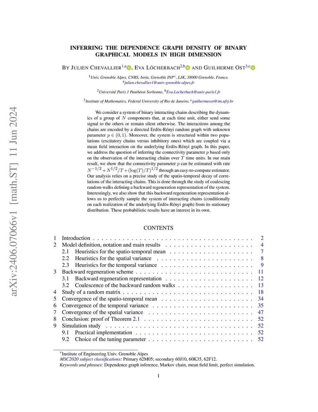 We consider a system of binary interacting chains describing the dynamics of a group of components that, at each time unit, either send some signal to the others or remain silent otherwise. The interactions among the chains are encoded by a directed Erd\"os-R\ényi random graph with unknown parameter $ p \in (0, 1) .$ Moreover, the system is structured within two populations (excitatory chains versus inhibitory ones) which are coupled via a mean field interaction on the underlying Erd\"os-R\ényi graph. In this paper, we address the question of inferring the connectivity parameter based only on the observation of the interacting chains over time units. In our main result, we show that the connectivity parameter can be estimated with rate through an easy-to-compute estimator. Our analysis relies on a precise study of the spatio-temporal decay of correlations of the interacting chains. This is done through the study of coalescing random walks defining a backward regeneration representation of the system. Interestingly, we also show that this backward regeneration representation allows us to perfectly sample the system of interacting chains (conditionally on each realization of the underlying Erd\"os-R\ényi graph) from its stationary distribution. These probabilistic results have an interest in its own.