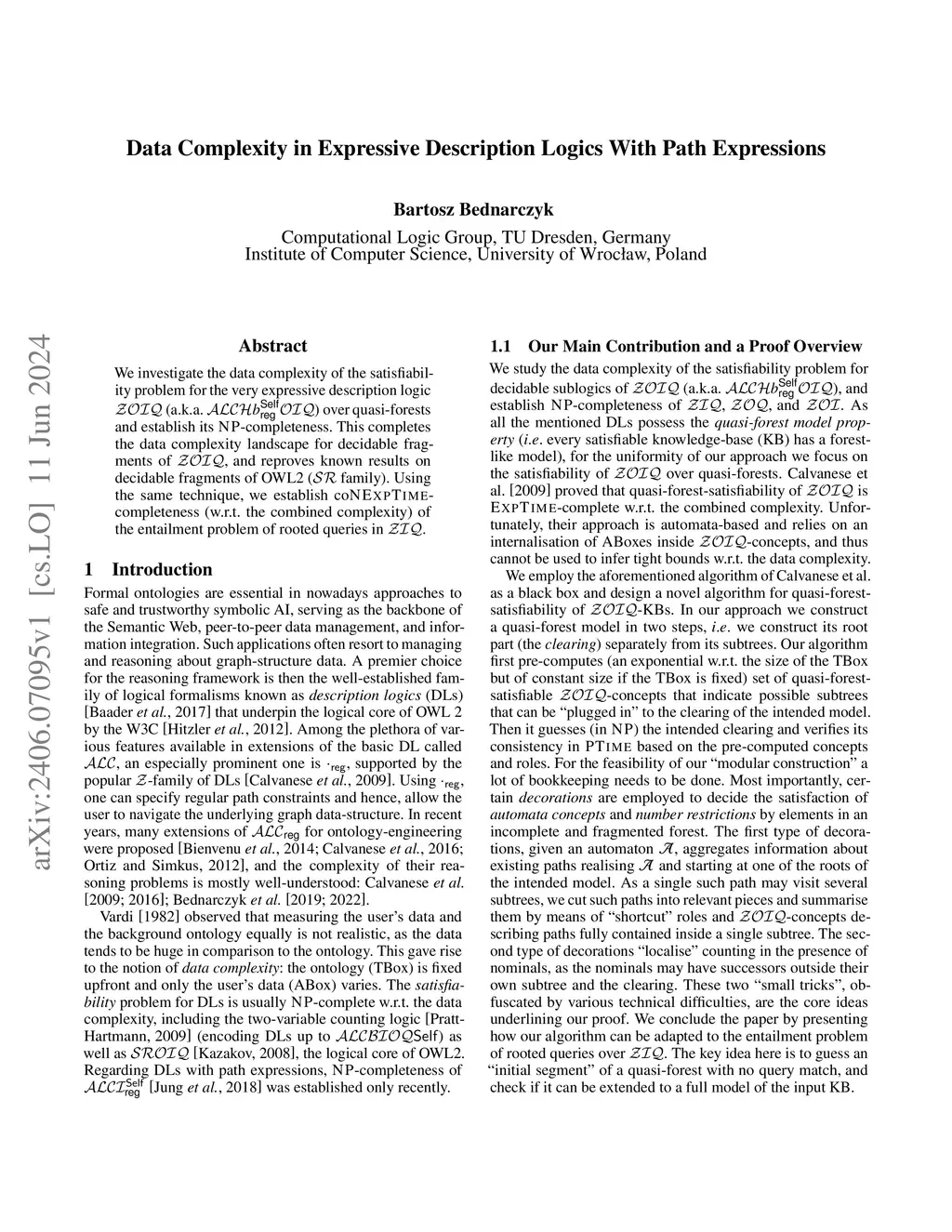 We investigate the data complexity of the satisfiability problem for the very expressive description logic ZOIQ (a.k.a. ALCHb Self reg OIQ) over quasi-forests and establish its NP-completeness. This completes the data complexity landscape for decidable fragments of ZOIQ, and reproves known results on decidable fragments of OWL2 (SR family). Using the same technique, we establish coNEXPTIME-completeness (w.r.t. the combined complexity) of the entailment problem of rooted queries in ZIQ.