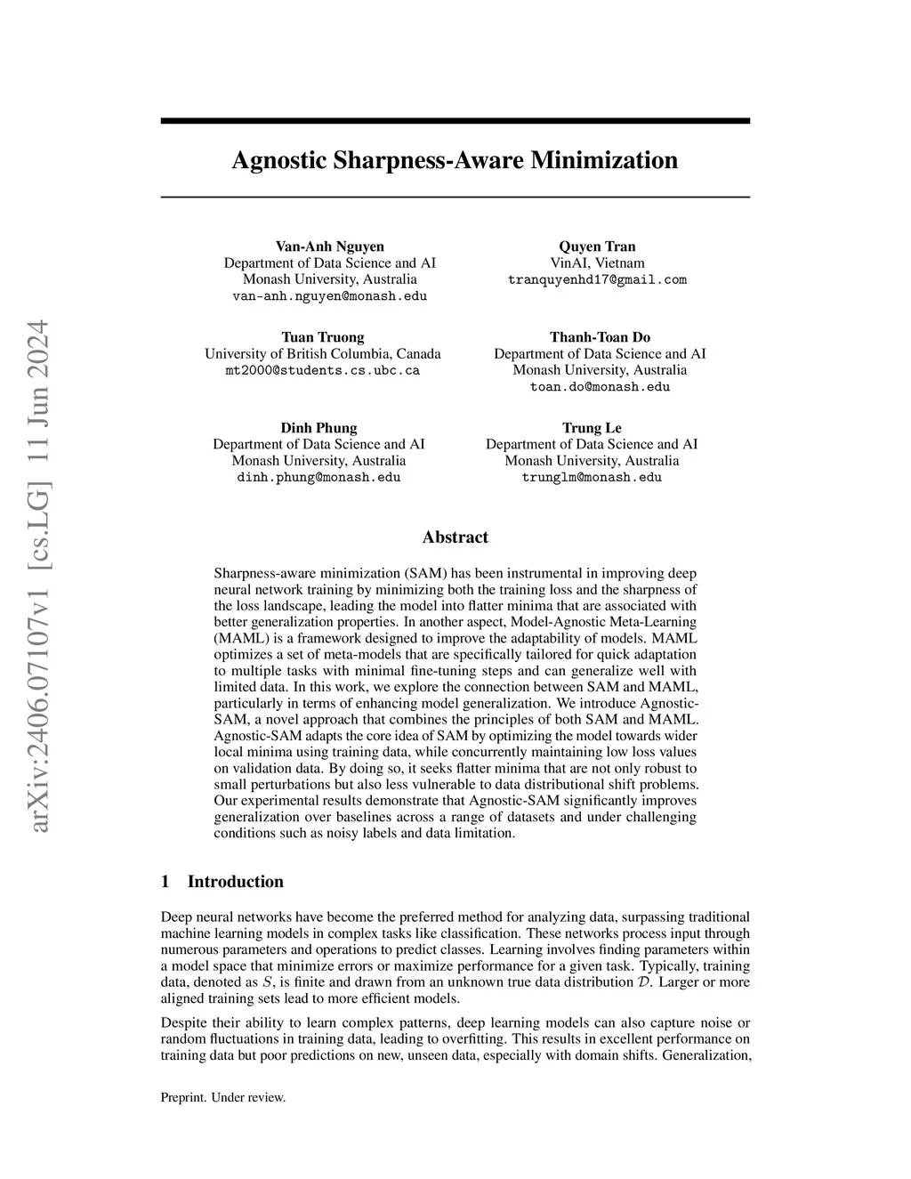 Sharpness-aware minimization (SAM) has been instrumental in improving deep neural network training by minimizing both the training loss and the sharpness of the loss landscape, leading the model into flatter minima that are associated with better generalization properties. In another aspect, Model-Agnostic Meta-Learning (MAML) is a framework designed to improve the adaptability of models. MAML optimizes a set of meta-models that are specifically tailored for quick adaptation to multiple tasks with minimal fine-tuning steps and can generalize well with limited data. In this work, we explore the connection between SAM and MAML, particularly in terms of enhancing model generalization. We introduce Agnostic-SAM, a novel approach that combines the principles of both SAM and MAML. Agnostic-SAM adapts the core idea of SAM by optimizing the model towards wider local minima using training data, while concurrently maintaining low loss values on validation data. By doing so, it seeks flatter minima that are not only robust to small perturbations but also less vulnerable to data distributional shift problems. Our experimental results demonstrate that Agnostic-SAM significantly improves generalization over baselines across a range of datasets and under challenging conditions such as noisy labels and data limitation.