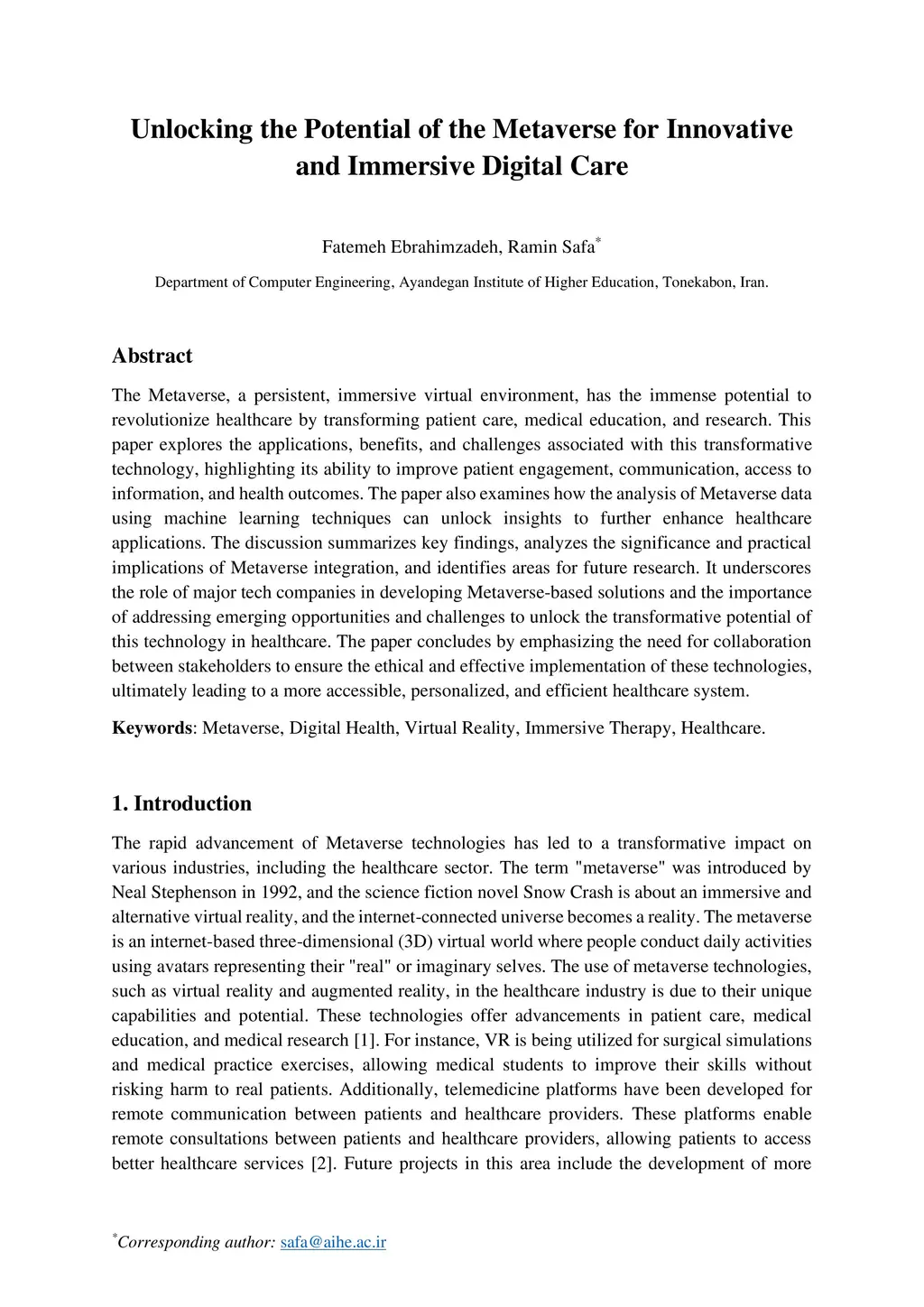 The concept of Metaverse has attracted a lot of attention in various fields and one of its important applications is health and treatment. The Metaverse has enormous potential to transform healthcare by changing patient care, medical education, and the way teaching/learning and research are done. The purpose of this research is to provide an introduction to the basic concepts and fundamental technologies of the Metaverse. This paper examines the pros and cons of the Metaverse in healthcare context and analyzes its potential from the technology and AI perspective. In particular, the role of machine learning methods is discussed; We will explain how machine learning algorithms can be applied to the Metaverse generated data to gain better insights in healthcare applications. Additionally, we examine the future visions of the Metaverse in health delivery, by examining emerging technologies such as blockchain and also addressing privacy concerns. The findings of this study contribute to a deeper understanding of the applications of Metaverse in healthcare and its potential to revolutionize the delivery of medical services.