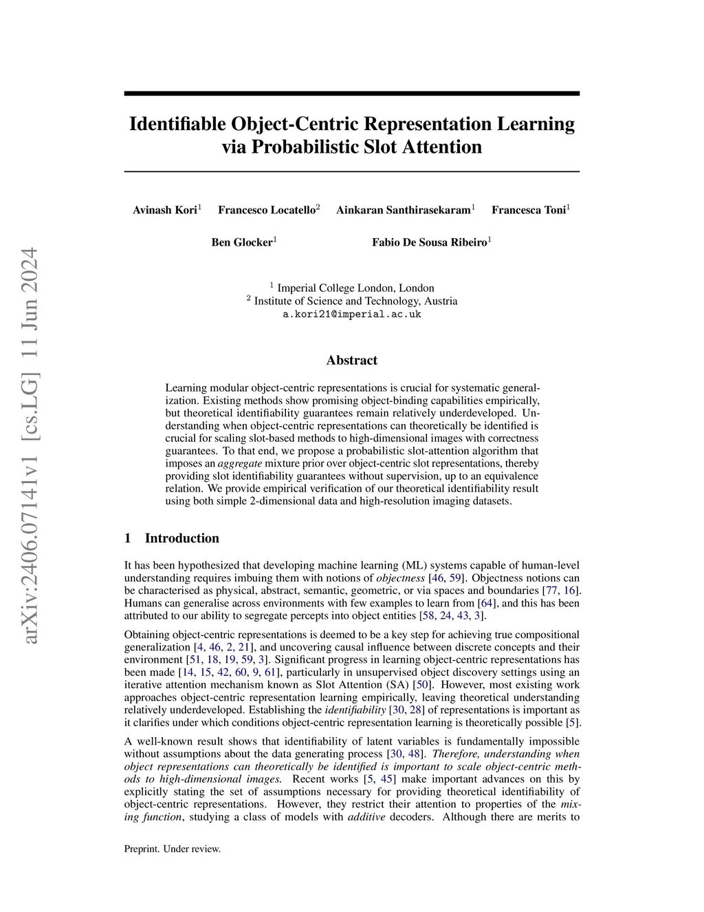 Identifiable Object-Centric Representation Learning via Probabilistic