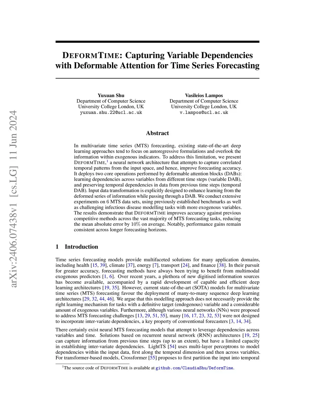 DeformTime: Capturing Variable Dependencies with Deformable Attention for Time Series Forecasting