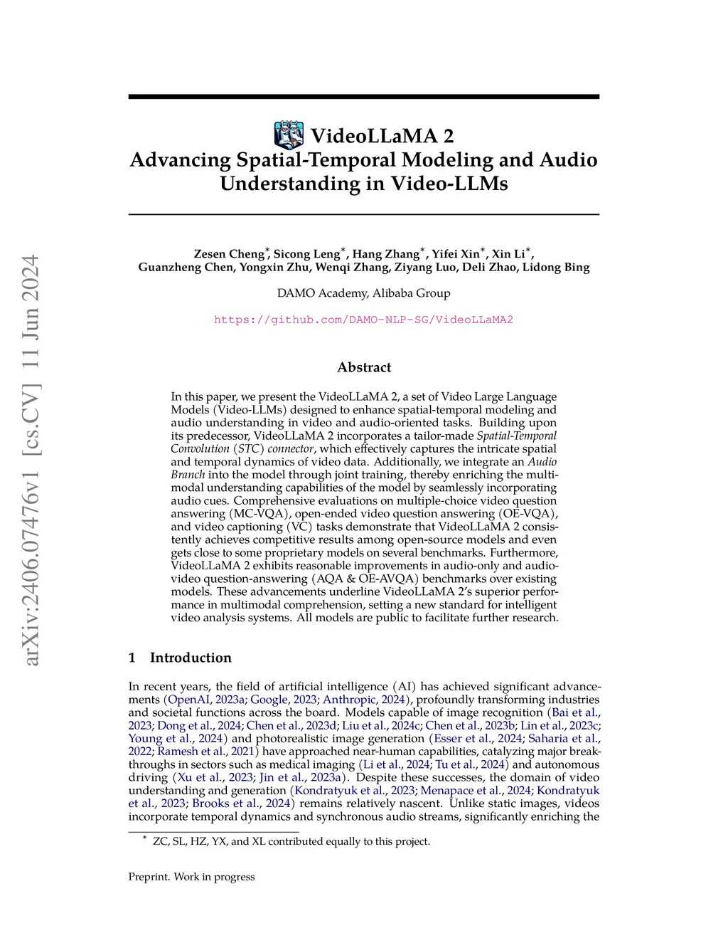 VideoLLaMA 2: Advancing Spatial-Temporal Modeling and Audio