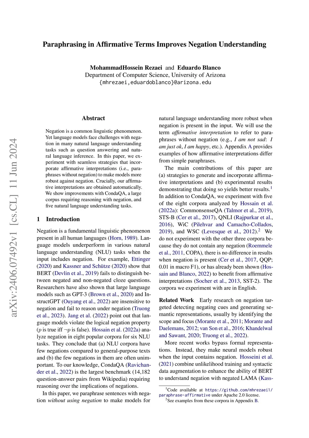 Paraphrasing in Affirmative Terms Improves Negation Understanding