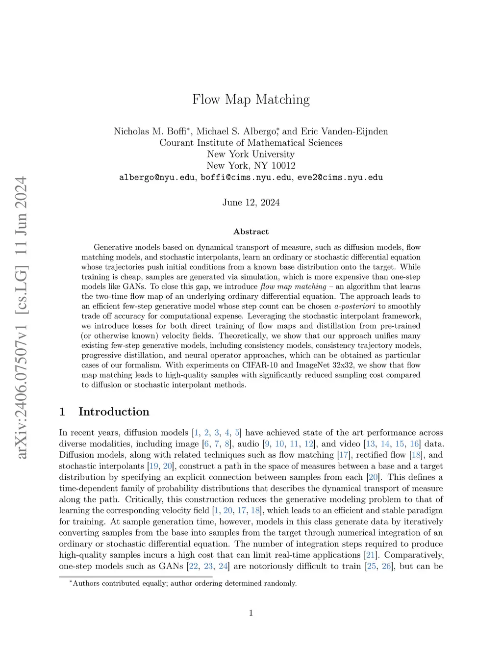 Generative models based on dynamical equations such as flows and diffusions offer exceptional sample quality, but require computationally expensive numerical integration during inference. The advent of consistency models has enabled efficient one-step or few-step generation, yet despite their practical success, a systematic understanding of their design has been hindered by the lack of a comprehensive theoretical framework. Here we introduce Flow Map Matching (FMM), a principled framework for learning the two-time flow map of an underlying dynamical generative model, thereby providing this missing mathematical foundation. Leveraging stochastic interpolants, we propose training objectives both for distillation from a pre-trained velocity field and for direct training of a flow map over an interpolant or a forward diffusion process. Theoretically, we show that FMM unifies and extends a broad class of existing approaches for fast sampling, including consistency models, consistency trajectory models, and progressive distillation. Experiments on CIFAR-10 and ImageNet-32 highlight that our approach can achieve sample quality comparable to flow matching while reducing generation time by a factor of 10-20.