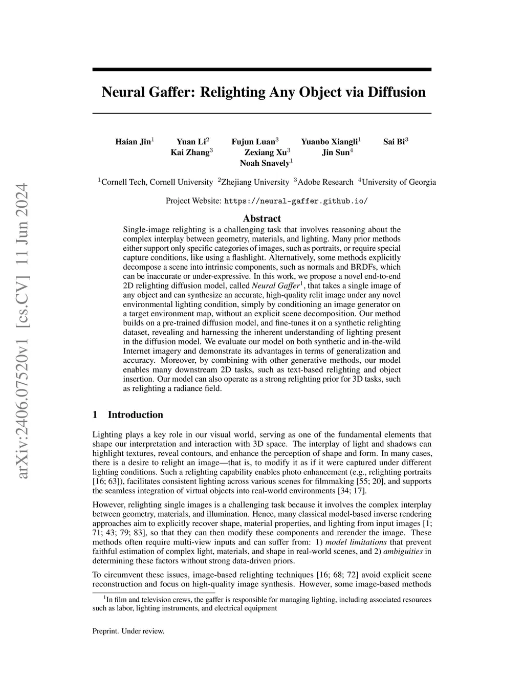Neural Gaffer: Relighting Any Object via Diffusion