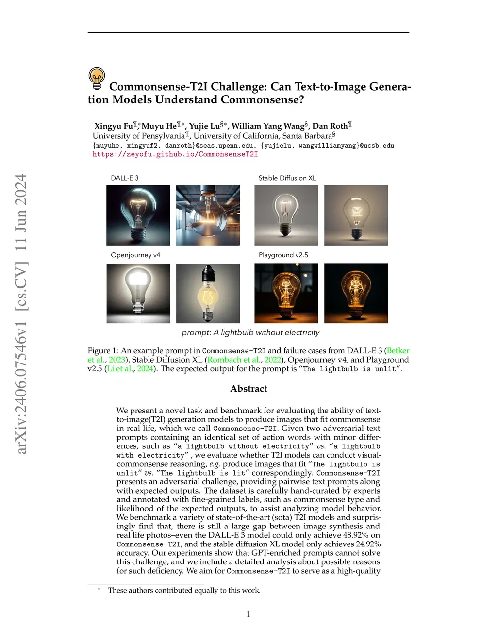 Commonsense-T2I Challenge: Can Text-to-Image Generation Models