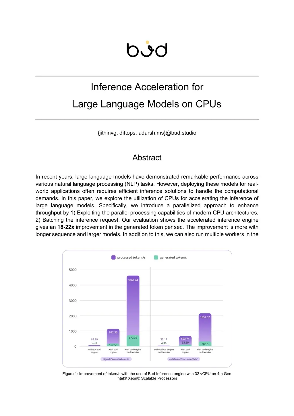 In recent years, large language models have demonstrated remarkable performance across various natural language processing (NLP) tasks. However, deploying these models for real-world applications often requires efficient inference solutions to handle the computational demands. In this paper, we explore the utilization of CPUs for accelerating the inference of large language models. Specifically, we introduce a parallelized approach to enhance throughput by 1) Exploiting the parallel processing capabilities of modern CPU architectures, 2) Batching the inference request. Our evaluation shows the accelerated inference engine gives an 18-22x improvement in the generated token per sec. The improvement is more with longer sequence and larger models. In addition to this, we can also run multiple workers in the same machine with NUMA node isolation to further improvement in tokens/s. Table 2, we have received 4x additional improvement with 4 workers. This would also make Gen-AI based products and companies environment friendly, our estimates shows that CPU usage for Inference could reduce the power consumption of LLMs by 48.9% while providing production ready throughput and latency.