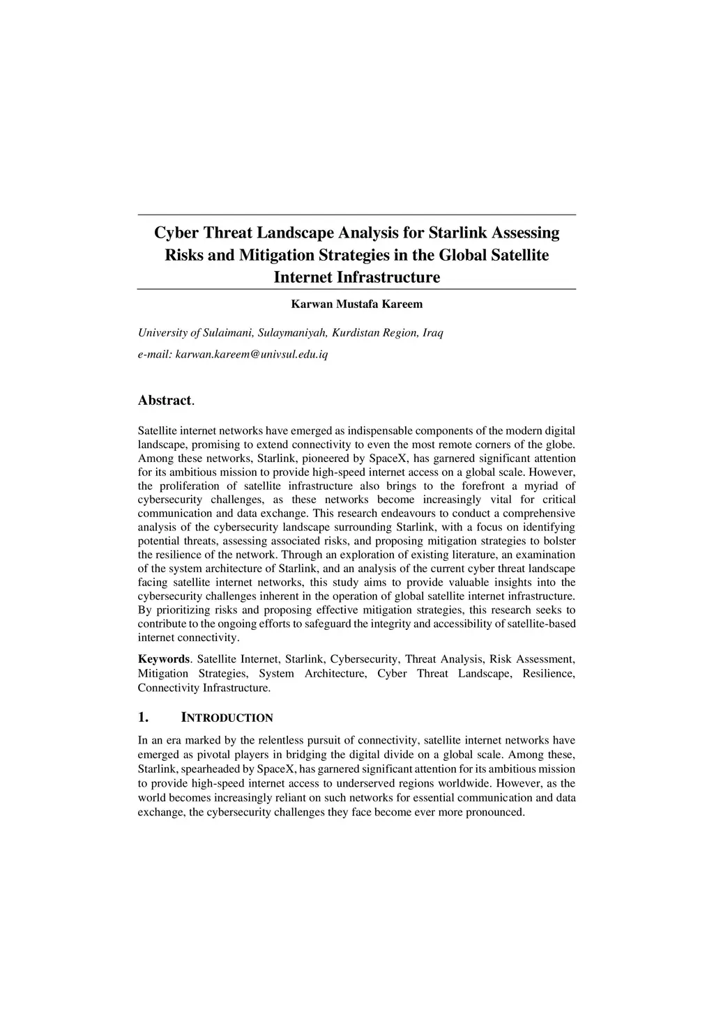 Cyber Threat Landscape Analysis for Starlink Assessing Risks and
