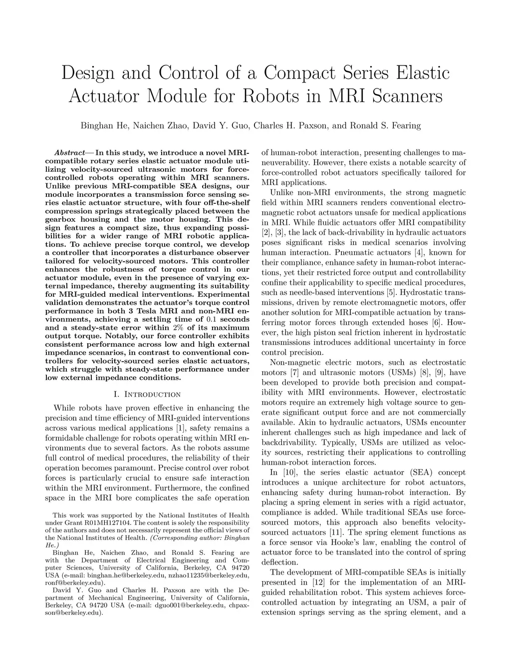 Design and Control of a Compact Series Elastic Actuator Module for Robots in MRI Scanners