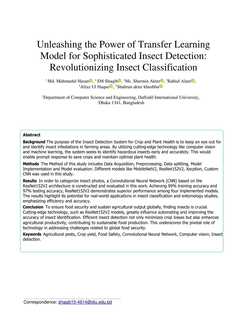Unleashing the Power of Transfer Learning Model for Sophisticated Insect